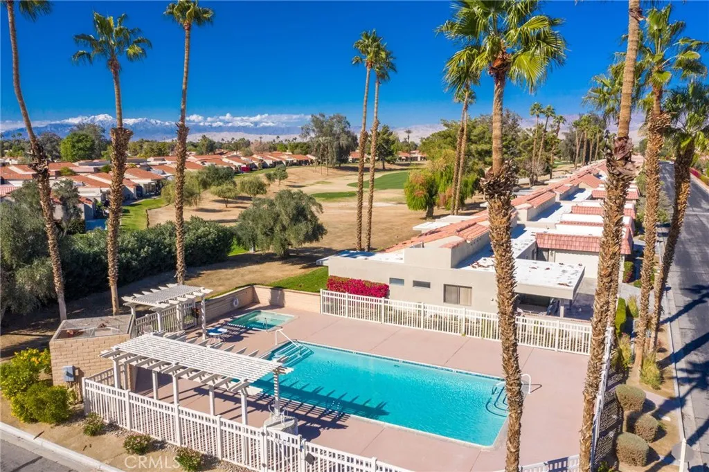 "PRICED TO SELL" South Facing Unit with commanding mountain, lake and tee to green views on an elevated lot high above others. NOTE: most exterior photos were taken during overseeding and not showing the lush conditions of the course now. Welcome to Palm Desert Resort Country Club, aka The Resorter, a premier 24 HR Guarded/Gated community nestled between the Santa Rosa and San Jacinto Mountains. This highly upgraded town home is designer perfect throughout, just pack your bags as this home is offered completely turn-key furnished for immediate enjoyment. The unit offers (2) very private en-suites with a high soaring cathedral ceiling living room between and enjoys a very open concept floor plan. Your custom kitchen has Montal Co. maple cabinets, brand new stainless appliances, stone countertops and a large peninsula with bar stools. Patio access from all rooms with newer Alumawood covered patio cover that does not need any maintenance for years to come. Attached 2 car garage has direct access to home and tons of storage throughout and enjoys a wall AC unit. The Resorter is well known for its abundance of amenities boasting a Championship semi-private 18-hole golf course, driving range, one of the largest Pickleball facilities in the valley with 28 courts, tennis, (note additional discounted membership available to HOA homeowners for Pickleball/Tennis and several golf packages) 20 pools and spas, enormous clubhouse with dining and I am told the chef is fabulous, huge pro shop, separate caf, bocce ball and lakes. All this and centrally located with quick convenience of the 10