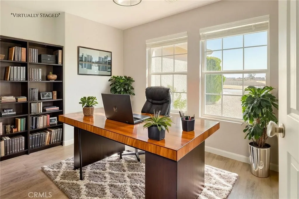 Beautifully Remodeled 3 Bedroom, 2 Bath Home PLUS AN OFFICE on a Landscaped Corner Lot in a Great Neighborhood! This spacious and stylish home offers an incredible combination of curb appeal, modern updates, and functionalitylocated on a quiet cul-de-sac in one of Yucca Valleys most desirable neighborhoods. Situated on a fully landscaped corner lot, the property features a large front yard, drive-thru side gates for RV or toy parking, and a block wall-enclosed backyard for privacy. As you enter, you'll love the open concept layout, tall vaulted ceilings, and luxury vinyl plank flooring throughout. A natural gas fireplace adds warmth and charm to the main living space, which flows effortlessly into the updated kitchen featuring quartz countertops, stainless steel appliances, ample cabinetry, generous counter space, and a pantry for added storage. This home includes three well-sized bedrooms PLUS AN OFFICE, which can easily serve as a fourth bedroom if needed. The primary suite offers two closets, a remodeled ensuite bathroom with dual sinks, a newer vanity, and a beautiful walk-in tiled shower. The guest bathroom is conveniently located near the other two bedrooms and has also been updated with a shower-tub combo and newer finishes. Additional highlights include an indoor laundry room with extra storage, a fully finished two-car garage, and modern, move-in-ready finishes throughout. Step into the backyard oasis to enjoy the large covered patio, western-facing sunsets, and flat, usable spaceperfect for entertaining or relaxing. A fully finished stucco outbuilding in the rear