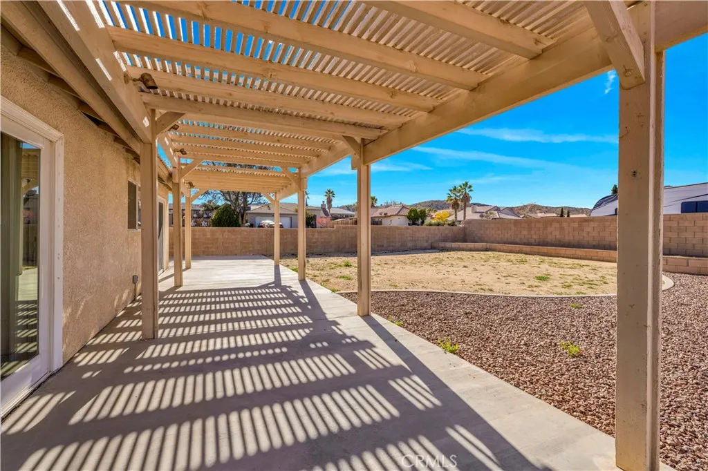 WITH A FULL PRICE OFFER, SELLER IS WILLING TO CONTRIBUTE $10,000 TOWARDS THE BUYER'S CLOSING COSTS. This beautifully Remodeled 3 Bedroom, 2 Bath Home PLUS AN OFFICE on a Landscaped Corner Lot in a Great Neighborhood! This spacious and stylish home offers an incredible combination of curb appeal, modern updates, and functionalitylocated on a quiet cul-de-sac in one of Yucca Valleys most desirable neighborhoods. Situated on a fully landscaped corner lot, the property features a large front yard, drive-thru side gates for RV or toy parking, and a block wall-enclosed backyard for privacy. As you enter, you'll love the open concept layout, tall vaulted ceilings, and luxury vinyl plank flooring throughout. A natural gas fireplace adds warmth and charm to the main living space, which flows effortlessly into the updated kitchen featuring quartz countertops, stainless steel appliances, ample cabinetry, generous counter space, and a pantry for added storage. This home includes three well-sized bedrooms PLUS AN OFFICE, which can easily serve as a fourth bedroom if needed. The primary suite offers two closets, a remodeled ensuite bathroom with dual sinks, a newer vanity, and a beautiful walk-in tiled shower. The guest bathroom is conveniently located near the other two bedrooms and has also been updated with a shower-tub combo and newer finishes. Additional highlights include an indoor laundry room with extra storage, a fully finished two-car garage, and modern, move-in-ready finishes throughout. Step into the backyard oasis to enjoy the large covered patio, western-facing sunsets, and
