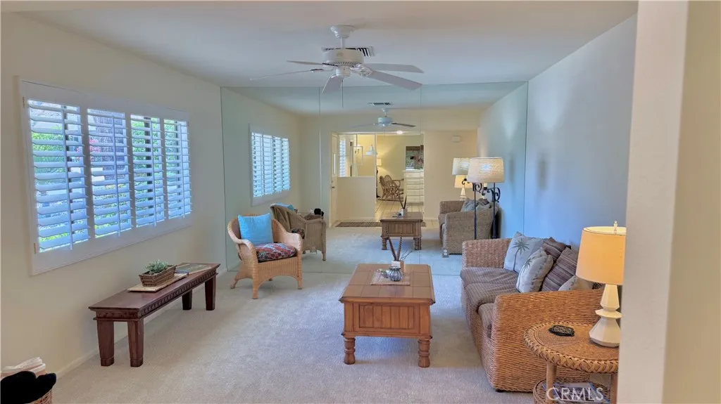 Location! Location! Location! This home is in one of the most sought-after hidden neighborhoods in La Quinta, 'Highland Palms', with Indian Wells Tennis Garden and shopping nearby. It's also on one of the best lots in a very quiet neighborhood. It's situated on a large corner lot, with one side being a cul-de-sac and a truly spectacular up-close view of the Santa Rosa mountains. Lovely nearby church bells can be heard. With a nice tile roof, lovely entry patio, brick paver driveway, great backyard patio, and well-maintained yard, the home has a wonderful indoor-outdoor floor plan, creating lots of open concept space for entertaining and ease, yet very cozy. It has been lovingly maintained through the years, with all new paint, carpet throughout and new tile floor in the master bath. It has a nice sized master bedroom with en-suite bath including dual sinks and lots of cabinets. Second bedroom offers a sliding door to the patio with a walk-in closet. Third bedroom has a good size closet and mountain view. There is a large outdoor storage shed, with more storage in the two-car garage and plenty of room for a pool or spa. A great move-in ready home or a comfortable vacation getaway. A must see!
