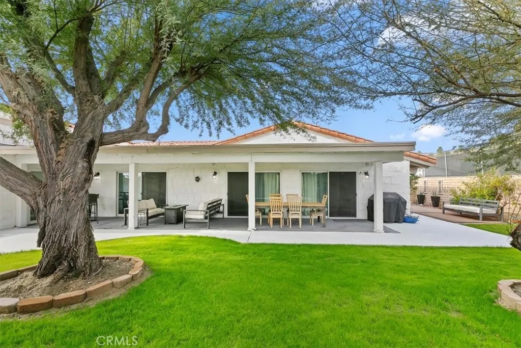 Offered long term, (Call for seasonal rates...AVAILABLE for 2027 SEASON) Enjoy resort-style living in this beautifully furnished 3-bedroom, 2-bath home with a private pool and spacious yard, perfectly situated at the end of a quiet cul-de-sac in the desirable La Quinta Country Club Montero Estates. Offering 2,168 square feet of living space, this single-level home welcomes you with an open floor plan, exposed beam vaulted ceilings, and wood-look flooring throughout the main living areas. The great room flows effortlessly into the dining area and remodeled kitchen, featuring crisp white cabinetry, striking blue subway tile backsplash, and stainless steel appliances ideal for entertaining or relaxing after a day on the golf course. The primary suite offers backyard and pool access, a walk-in closet, and a beautifully updated spa-inspired bathroom with dual sinks, a soaking tub, and a separate glass-enclosed shower. Two guest bedrooms are equally inviting, each thoughtfully furnished for comfort. Step outside to your own private retreat a sparkling pool and spa, covered patio with outdoor seating, and mature landscaping that offers both beauty and privacy. Just beyond the backyard, pickleball enthusiasts will love having the community court right next door!Located in one of La Quintas most sought-after communities, this home is minutes from Old Town La Quinta, dining, golf, shopping, and hiking trails. Available turnkey furnished for seasonal T Experience the best of desert living in a peaceful, elegant setting.