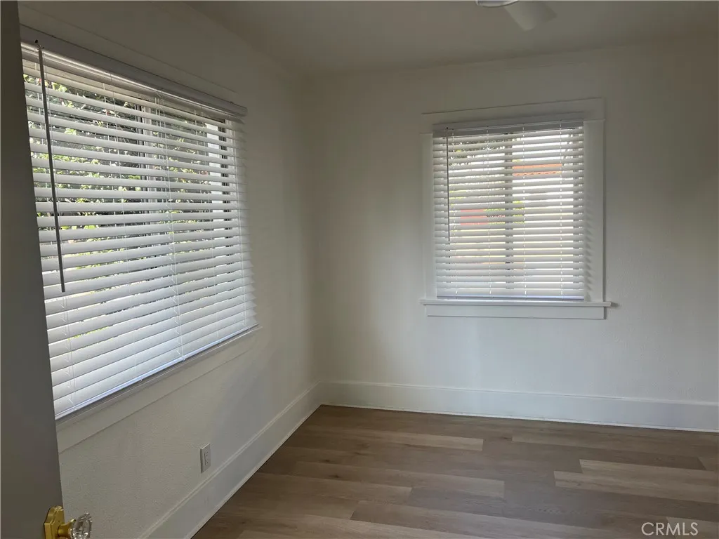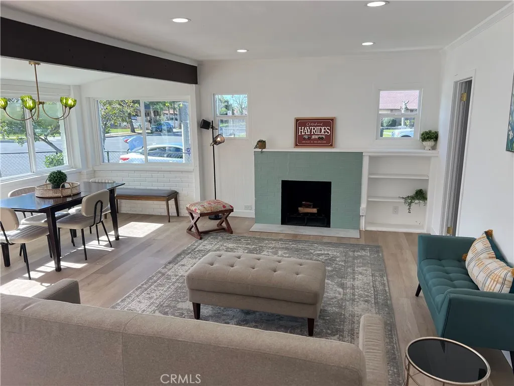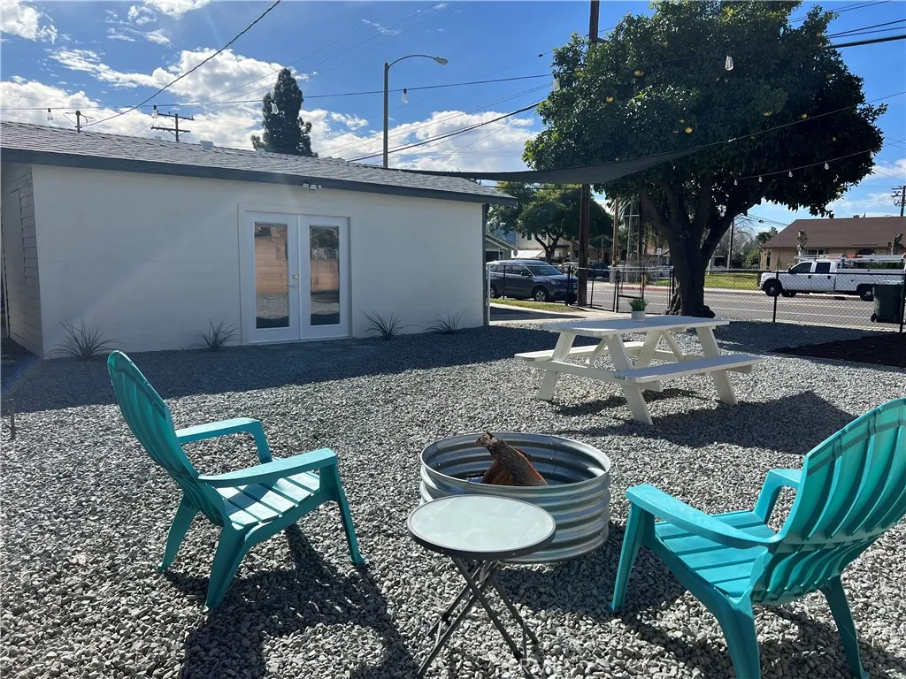 Welcome to this beautifully remodeled California Craftsman-style bungalow on a quiet large corner lot. This larger 2-bedroom, 2-full bath home offers 974 sq ft of updated living space with new luxury vinyl flooring, baseboards, trim, interior and exterior paint, recessed lighting, ceiling fans, and a cozy interior fireplace. The fully updated kitchen features new sleek white/green shaker cabinets with island, quartz countertops, designer backsplash, new hardware, and new high end appliances. Both bathrooms have been fully renovated with custom tiled showers, new vanities, and modern plumbing fixtures and a tankless water heater.. Outside, enjoy a fully fenced yard with new landscaping, fruit trees, and a warm fire pitperfect for entertaining or relaxing. Also room for multiple RV parking. A detached single-car garage adds convenience and storage with easy ADU possibilities - garage fully finished with use of play, workout, office, or bonus room. This turnkey Craftsman bungalow blends classic charm with modern upgrades and is ready to move right in.