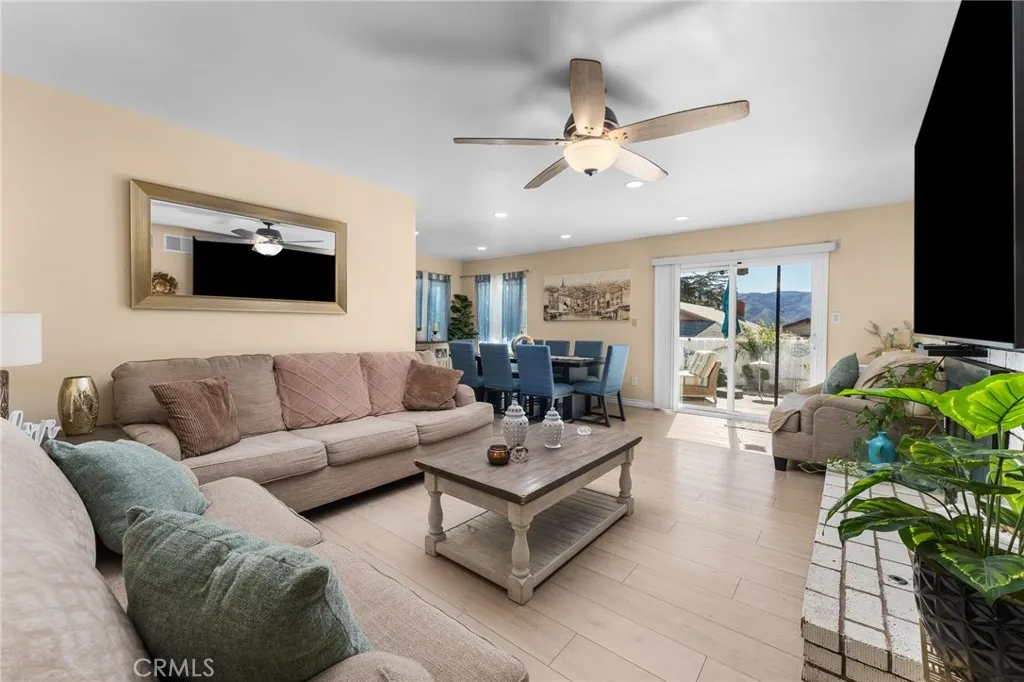 Welcome to this beautiful POOL HOME!!! Moving ready. Located in a desirable neighborhood of Banning!!! This 3 Bedroom, 2 Bathroom home includes a laundry room, Stainless steel appliances (excluding refrigerator), custom cabinets, Corian countertops, Laminated flooring throughout. Recessed lighting, and an open-concept layout that seamlessly connects the dinning, kitchen, and living areas. The home is equipped with double-pane windows throughout, a fireplace, and an A/C and Heating system approximately four years old. The laundry room is located next to the kitchen for your convenience and functionality. Relax and entertain in your private pool!! Perfect for gatherings with your family and friends! The home is just minutes from downtown Palm Springs, Desert Hills Premium Outlets, and Casino Morongo.