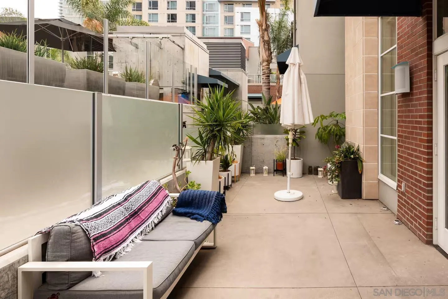 Discover a rare townhome opportunity at The Mark! Offering one of the largest floorpans in the community, this highly upgraded home boasts chic design elements, with vaulted ceilings and expansive windows that bathe the space in natural light. Enjoy the serenity of a private patio and roof deck, perfect for relaxation or entertaining. Townhome 109 is uniquely tucked away on a quieter street yet just moments from the vibrant energy of Petco Park, dining, and nightlife. The residence offers flexibility and style, available furnished or unfurnished, to suit your lifestyle needs. This luxury community provides 24-hour security, concierge services, a gym, salt water pool + spa, BBQ areas + pizza oven, and a conference room. Parking and storage included in monthly rent.
