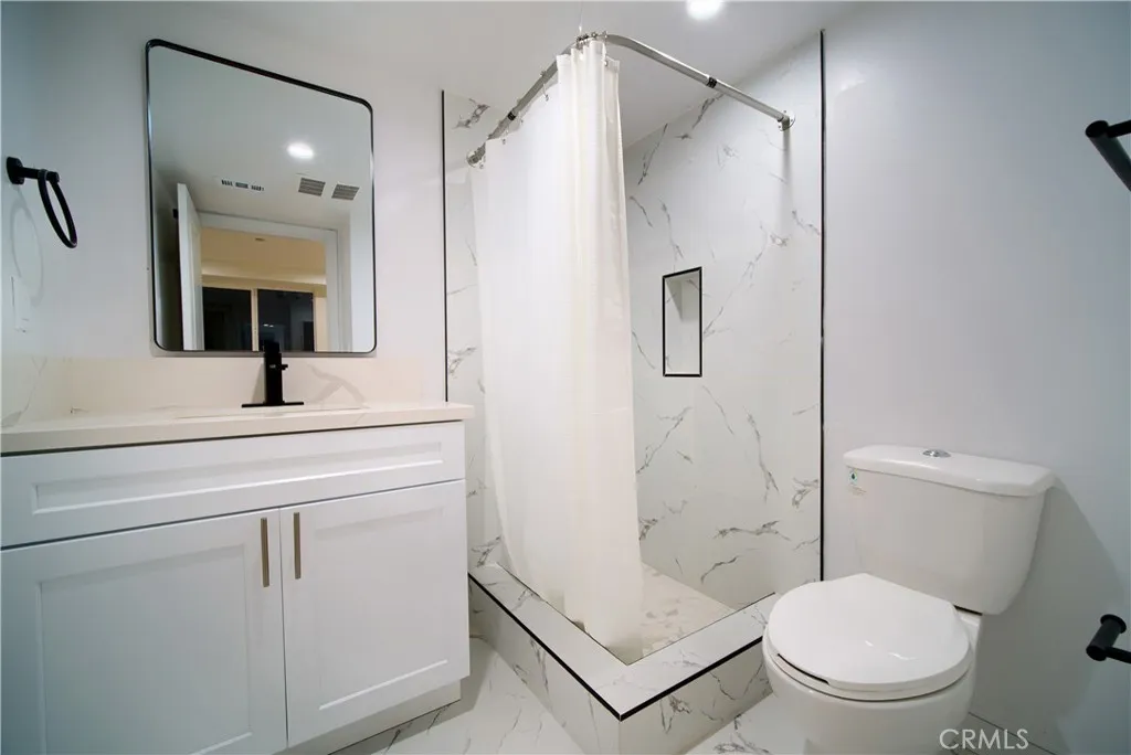 Brand-new 2026 construction offering over 2,056 square feet of modern, thoughtfully designed living space across three spacious levels. This exceptional 5-bedroom, 5-bath townhome delivers the size, layout, and privacy of a single-family home with the convenience of a central Los Angeles location. Unlike typical rentals in the area, this residence provides generous separation of space, making it ideal for families, professionals, students, or shared living arrangements. The first level features three spacious bedrooms and two full bathrooms, offering flexibility for multigenerational living, roommates, or home office setups. The second floor opens to a bright and expansive great room with open-concept living and dining areas, filled with natural light and complemented by a private balcony and convenient powder room. The modern kitchen is designed for both everyday living and entertaining, complete with quartz countertops, contemporary cabinetry, designer fixtures, and a premium appliance package. The third level includes two oversized bedroom suites with large closets, additional bathrooms, and a private laundry room with washer and dryer included. Interior finishes throughout the home include wide-plank flooring, recessed lighting, sleek black hardware, beautifully tiled walk-in showers with marble-style accents and built-in niches, central HVAC, and energy-efficient systems. On-site solar helps reduce utility costs while enhancing year-round comfort. Gated parking is located behind the building. Conveniently situated near the 110 and 105 freeways, Metro rail lines, Downto