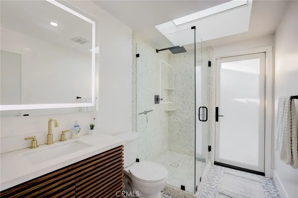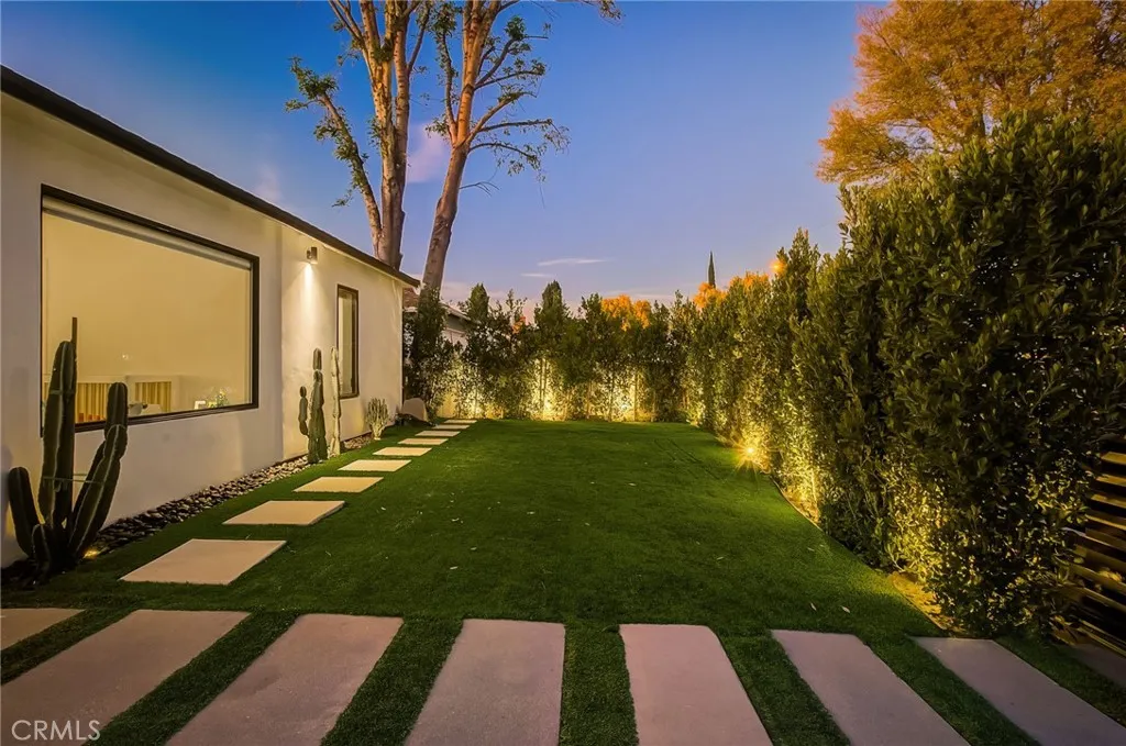 Welcome to 8161 Encino Ave, a stunning contemporary haven in Northridge, California. This 4-bedroom, 3-bathroom masterpiece has undergone a complete remodel, embodying modern design and sustainable living. As you enter through the secure and gated entrance, you'll notice the low-maintenance ficus trees enveloping the property for ultimate privacy. The exterior showcases a Santa Barbara finish, complemented by larger windows that flood the interior with natural light. For the environmentally conscious, this home is equipped with solar panels and a Tesla charger. The landscaping has been thoughtfully designed with turf replacing traditional grass, minimizing maintenance. Exterior gate and lighting are seamlessly controlled via wifi, with lights automatically illuminating the surroundings at sunset and gracefully dimming at sunrise. Security and convenience take center stage with smart home features, including Ring security cameras, main door smart locks, and climate control accessible through a user-friendly phone application. The garage, complete with a new door, offers a work station, ample shelving, and storage. The entire home and garage have been insulated, ensuring comfort in all weather conditions. Step into the backyard oasis where a heated pool and jacuzzi await. The pool area, featuring a natural gas firepit, is controllable through the smart home application. An entertainer's dream, the backyard boasts an expansive deck with a retractable sunbrella, while one of the bathrooms provides direct access for guests or a quick post-pool dry off. Inside, the home exudes lu