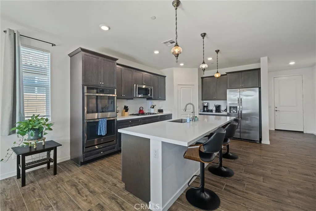 This incredible 2022 new build in the beautiful Paradiso gated community along the mountain range is a must see. The style and beauty of this particular home is not seen anywhere in the community. It is a 4 bedroom and 2 full bath with an incredible interior. The amount of extras in the home are too many to detail. It is a smart home that you are able to control lighting, garage door, and appliances, as well as offers fire sprinklers throughout. With new water con serving landscape as you walk up to the home is a relaxing oasis and in the evening you can enjoy the large back patio. The solar panels are owned outright on top of a clay roof. The entry with office/workout/ reading area off to side, the new flooring is amazing and scratch and water resistance in the kitchen and living areas. The kitchen wide open has new quartz counters, Reverse Osmosis Flo water monitoring system, walk-in pantry, coffee area, new appliances, and a huge island for cooking and entertaining, the living room also wide open to the back and has the most relaxing atmosphere, and gas fireplace. Both have custom fans and lighting that is just enamoring. As you make your way to the bedrooms they are large and roomy, with tons of closet space, a common bathroom huge, that is bright and long counter and full bath with shower and bathtub. The laundry just off the inside separated and has its own storage on doors. Then you make your way to the master bedroom (ensuite) that is so spacious and bright with natural light much like the rest of the home, with the bathroom being wide open and beautiful. Also comes