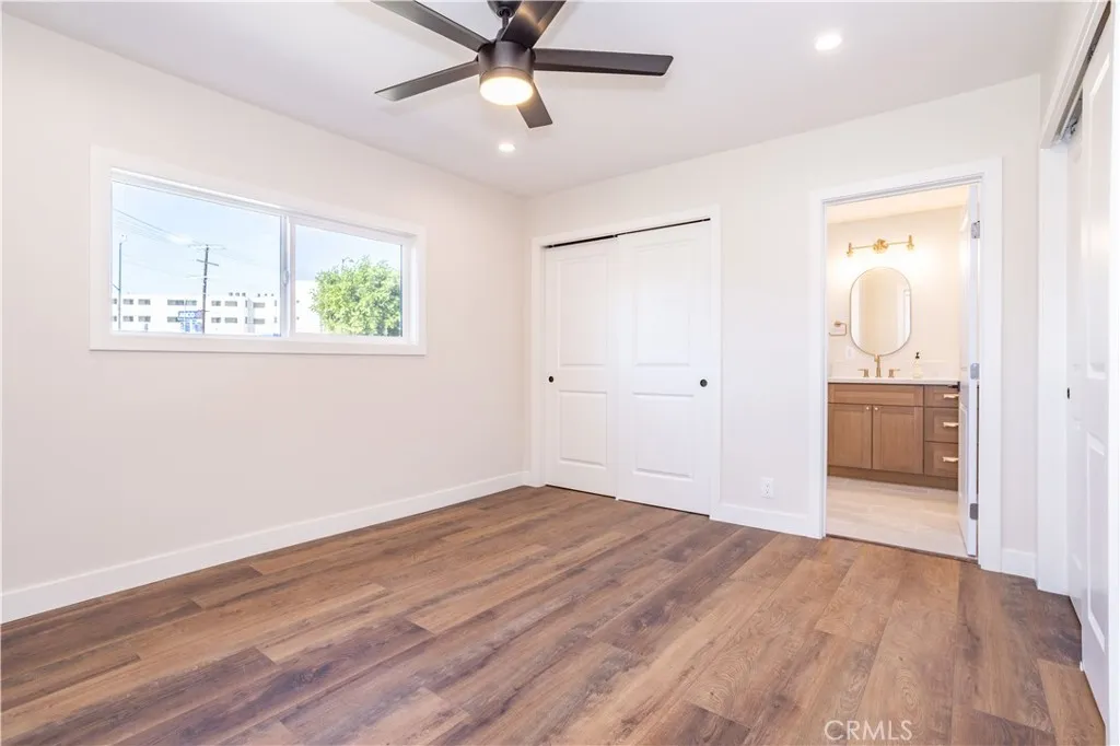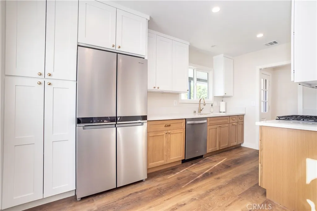 Beautiful freshly remodeled 3-bedroom 2-bath home in prime Sun Valley area with large lot adjacent to Burbank. The spacious interior features open concept living and family rooms, a refined separate dining area with modern chandelier, a large & bright kitchen boasting brand new appliances including refrigerator, dishwasher, oven range, microwave, washer & dryer, and abundant cabinet space. The new stacking washer & dryer set is discreetly located in the kitchen nook, and a convenient kitchen side door leads to a generous lot of over 9K square feet. The primary bathroom features a beautiful walk-in shower with upscale finishes and wall cabinetry. Towards the back, the rear bedroom opens to a newly paved, smooth-concrete side yard that connects to the garage entrance. Extending from here, the concrete walkway leads to an outdoor space with gorgeous mountain views, a variety of fruit trees, and a wrap-around path to a side yard offering an expansive green space. Each bedroom is equipped with modern ceiling fans and wall-secured remotes. Recessed lighting & dimmable light switches throughout; premium vinyl flooring; and a new electrical panel are among more of the numerous upgrades. Come see this beautiful remodeled home on a generous lot near the Hollywood-Burbank Airport, Woodbury University, vibrant Burbank shopping, and easy freeway access!