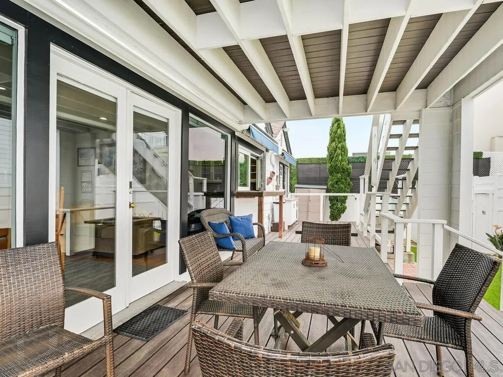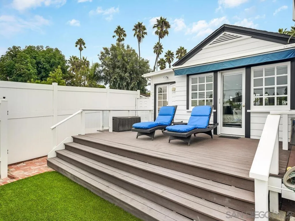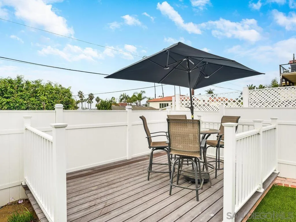 Single level ocean view home at "The Shores", just yards to miles of white sandy beach and the coastline. Three bedrooms, 3 baths plus an office/den & formal dining room. Remodeled and fully furnished with fireplace, gleaming oak flooring, air conditioning & covered deck Walled and gated with 2 parking spaces in front. Private, sunny and breezy. Easy stroll to all the shops & restaurants the Shores offers. Available immediately.