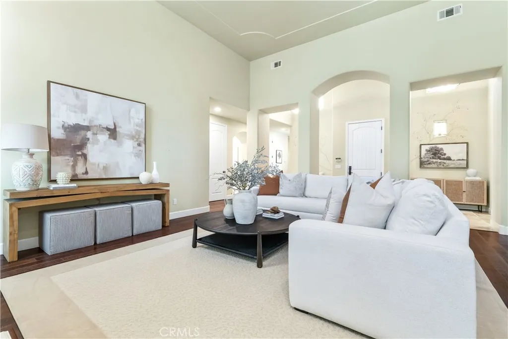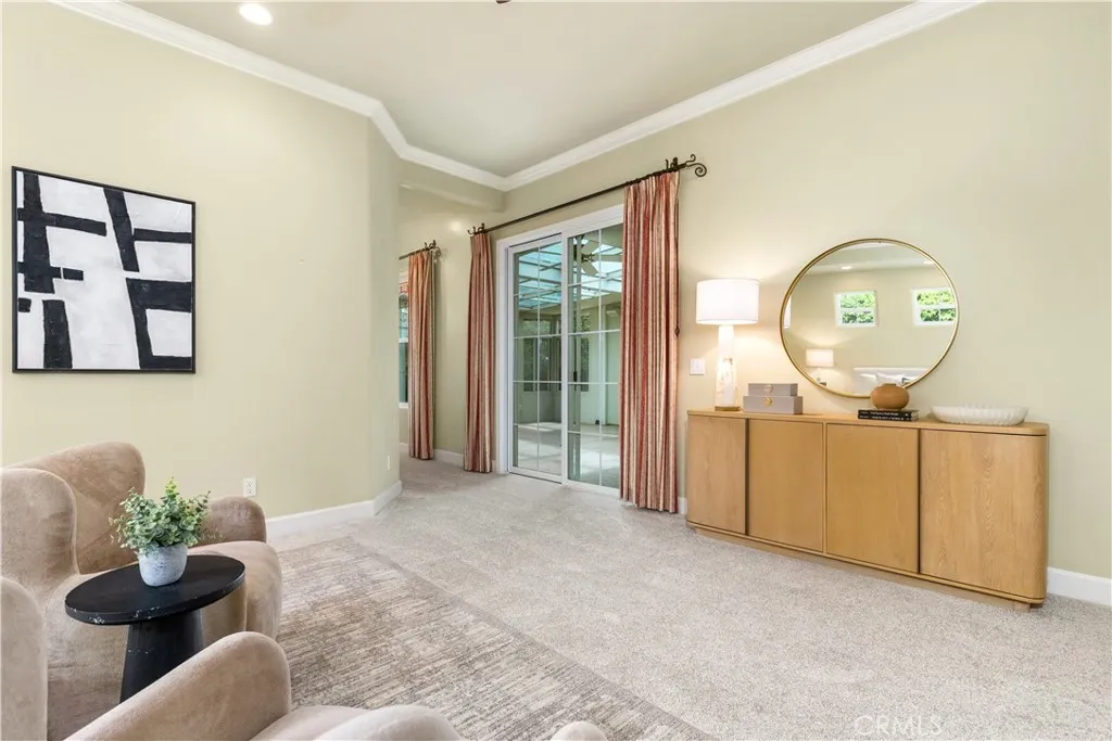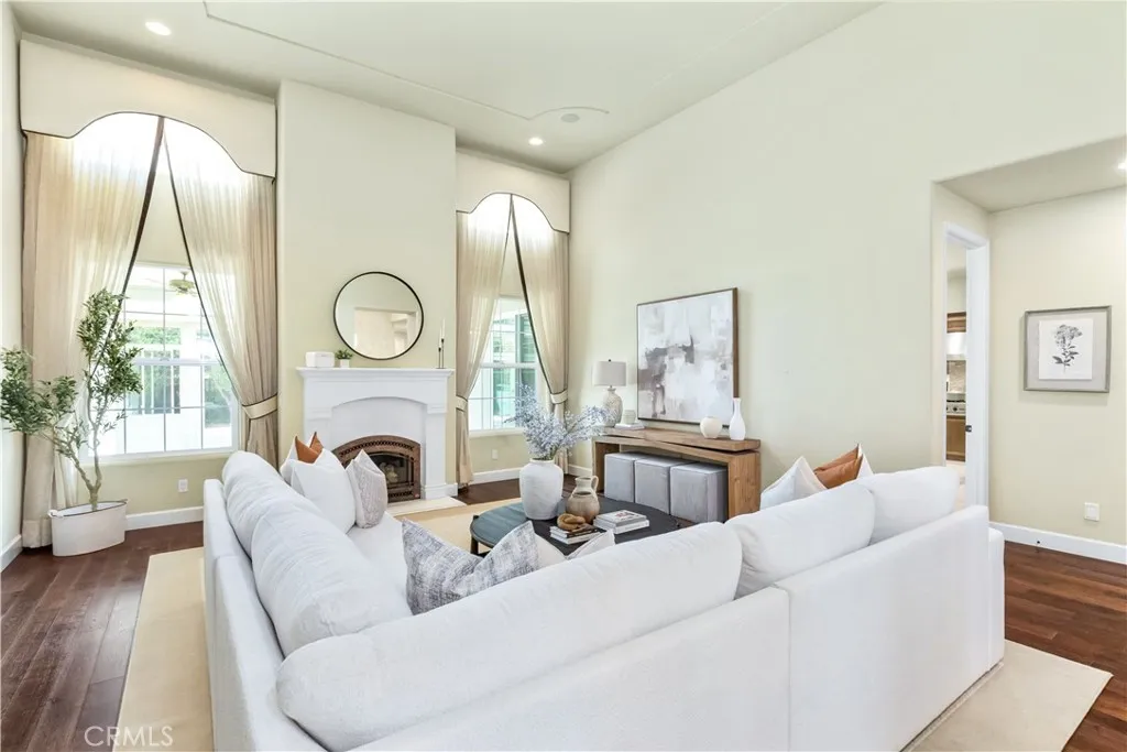 PRICE REDUCED! Discover refined luxury living in the prestigious Ventana at Hacienda Hills gated neighborhood, where elegance meets everyday comfort. This stunning, move in ready executive residence spans approximately 3,166 square feet and showcases a thoughtful blend of wood, travertine, and carpeted flooring, with select areas featuring tray ceilings and crown molding. The home offers four spacious bedrooms and three well appointed bathrooms, providing both comfort and versatility. The welcoming living room is anchored by a striking fireplace, while the cozy family room and elegant formal dining room, complete with a built in hutch, create ideal spaces for entertaining and everyday living. At the heart of the home, the expansive chefs kitchen is a true culinary showpiece, featuring granite countertops, a Viking six burner range, a Sub Zero built in refrigerator, a separate Sub Zero crisper drawer, a large center island, custom cabinetry with pull out storage, and a reverse osmosis water system. The kitchen opens to the family room, which along with the living room and sunroom is equipped with built in surround sound speakers, perfect for hosting or relaxing at home. The luxurious primary suite serves as a private retreat with a generous walk in closet, dual vanities, a soaking tub, and a spacious glass enclosed shower. Additional highlights include plantation shutters, soaring ceilings, alarm system and a spacious laundry room with a sink and built in cabinetry. Step outside to enjoy the thoughtfully designed outdoor living space, including an enclosed sunroom, a stamped