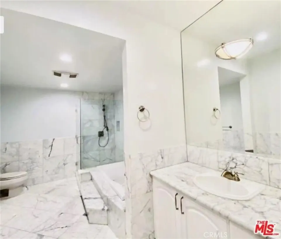 Welcome home to this exceptionally spacious 2-bedroom, 2.5-bath condo in the highly sought-after Fountain View Villas in prime West Hollywood. Tucked inside the gated community and facing the peaceful interior courtyard, this 1,570 sq ft residence is quiet, private, and free from street noise, while still moments from everything. The inviting floor plan begins with a formal entry/foyer and opens to a huge living room with fireplace, hardwood floors, high ceilings, built-ins, and seamless indoor-outdoor flow to a private enclosed patio with direct access to the spa. The eat-in kitchen and dining area are perfect for entertaining, and additional features include a washer and dryer, abundant storage, and a convenient powder room. Both bedrooms are true primary suites, each featuring beautifully remodeled bathrooms with jetted soaking tubs, separate glass-enclosed showers, and generous closet space. The main suite also offers a large walk-in closet. Additional highlights include central heat and air, two side-by-side gated parking spaces, guest parking, and a private storage unit. The building offers resort-style amenities including a pool, indoor and outdoor spas, sauna, gym, library, clubhouse with billiards, recreation room, charming landscaped courtyard, elevator access, and secure controlled entry. All just steps from the Sunset Strip, Equinox, top dining, shopping, and entertainmentthis is West Hollywood living at its best.