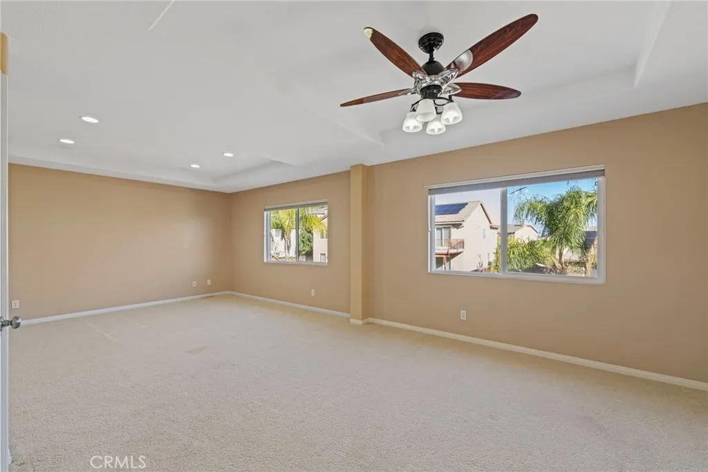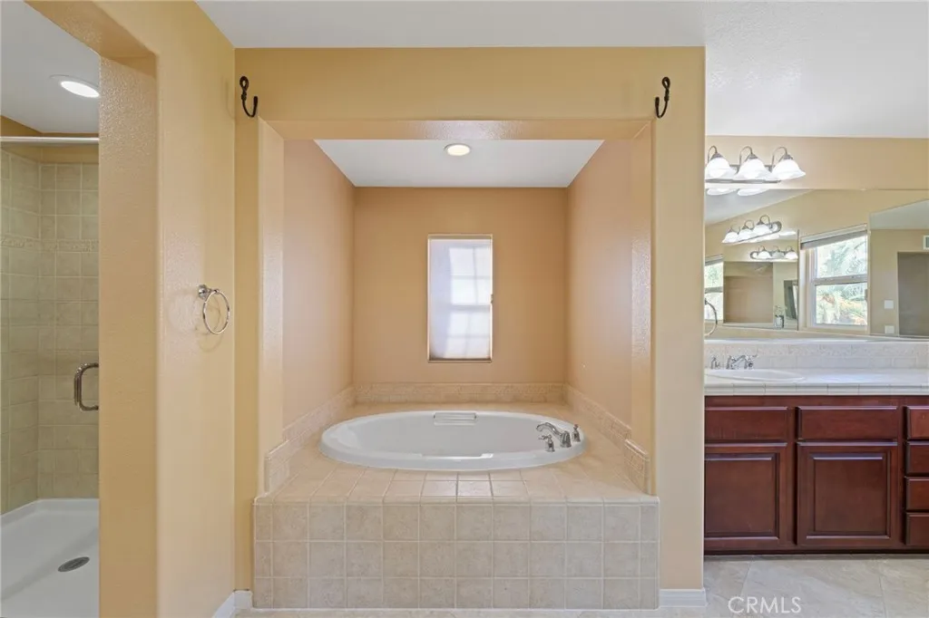 Welcome to 8634 Hunt Canyon Road, a beautifully maintained home in Montecito Ranch. This amazing property offers 5 spacious bedrooms (2 of them are on the main floor), 4 bathrooms, 2-tier AC system, and high ceiling throughout the entire house. The floor plan is thoroughly designed for open-concept living. The living room boasts a cathedral ceiling and open floor plan, saturated with natural light. Formal dining room is adjacent to a dream kitchen that includes an oversized center island, butlers pantry, and cherry wood cabinets. The kitchen opens to an incredibly large family room with a built in entertainment center and fireplace. Another great feature that this home offers is the 2 bedrooms downstairs, perfect for multi-generational compound! One bedroom has its own bathroom, with access to the swimming pool and the backyard. The second bedroom is adjacent to the full bathroom on the main floor. There is more to explore! A beautiful double wrought iron staircase leads you to the second floor. Upstairs offers an oversized loft for entertainment or a quiet hideout/library corner. The spacious, mountain view primary suite includes a premium walk-in closet with custom built-in organizer, separate soaking tub, shower, separate vanities, and a large retreat area that can be easily turned into a nursery or a gym. The left side of this home comprises the 4th and 5th bedrooms and the 4th full bathroom. Theres a metal/secured screen door recently installed at the entrance from the kitchen to the backyard for fresh air enjoyment. The well-kept backyard offers a sparkling, paradise