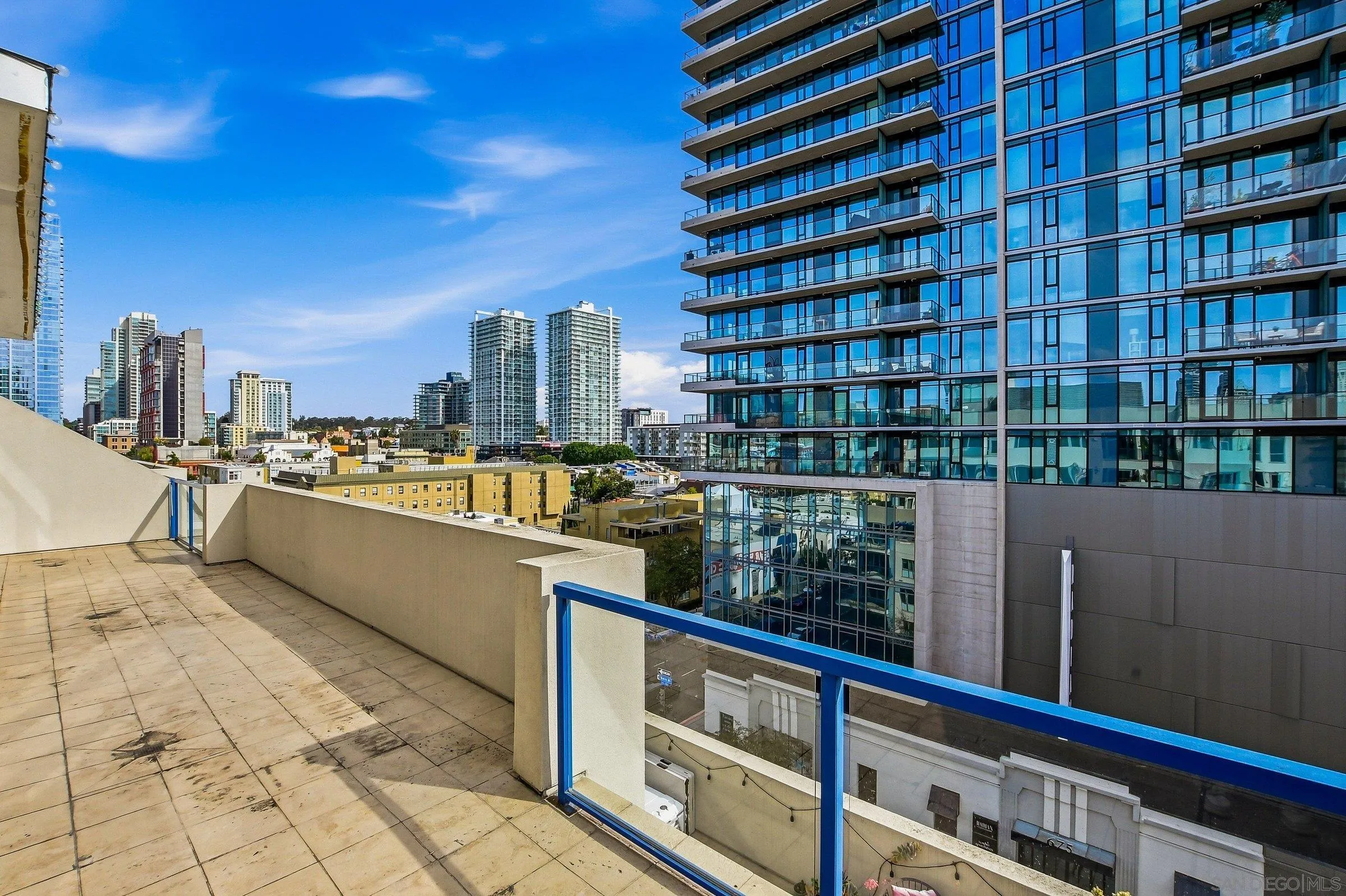 Welcome to elevated downtown living in this rare top-floor residence offering 2 bedrooms, 2 bathrooms, plus a dedicated space perfect for a home office. With no units above, this 1,294 sq. ft. home provides privacy, natural light, and seamless indoor-outdoor flow in the heart of the city. The open-concept layout connects the kitchen, dining, and living areas, flowing effortlessly onto an oversized private-use patio that spans the entire length of the unit. This is a unique and exceptional extension of the living space and ideal for entertaining, relaxing, or enjoying San Diego’s year-round weather. Expansive windows fill the home with natural light, enhancing the bright and airy feel throughout. The oversized primary suite features a generous walk-in closet and well-appointed bath, while the secondary bedroom and full bath offer flexibility for guests or additional workspace. Additional highlights include in-unit laundry and two side-by-side parking spaces conveniently located near the elevator. Residents enjoy access to community amenities including a fitness center and a shared outdoor patio with grill. Ideally situated just a few short blocks from the energy of the Gaslamp Quarter and the Ballpark District, this home offers unbeatable access to dining, entertainment, and city life while still providing a private retreat above it all.