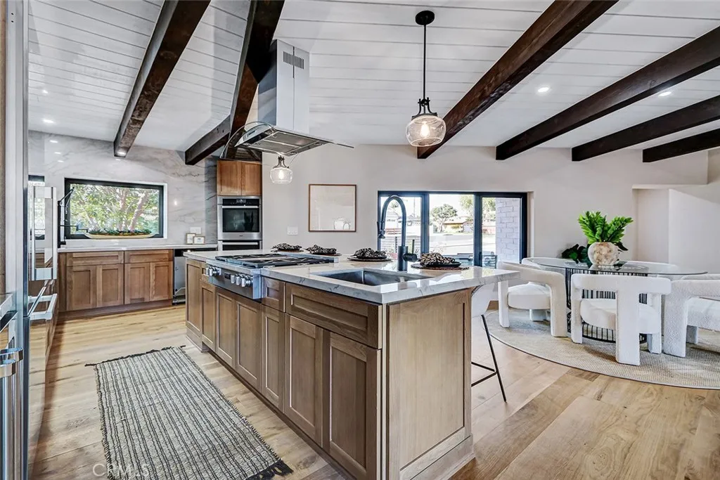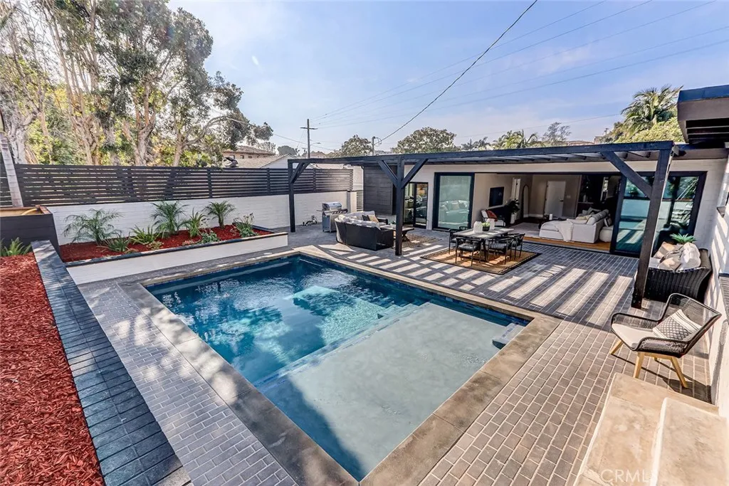 Welcome to this completely remodeled, custom single-level home in the heart of El Segundo. Designed with comfort, style, and effortless living in mind, this open-concept residence is filled with warmth thanks to rich wood floors and striking wood-beamed ceilings. The brand-new kitchen is a true showpiece, featuring a spacious island, quartz countertops, custom cabinetry, designer lighting, and top-of-the-line Miele stainless steel appliances. It flows seamlessly into the expansive living area, where floor-to-ceiling glass doors disappear to reveal a spectacular backyard oasis. Outside, enjoy a custom pool, pergola-covered patio, built-in BBQ, and full cook stationan entertainers dream space ready for gatherings of any size. The primary suite offers a peaceful retreat with a walk-in closet, a beautifully finished bathroom, and its own glass doors leading to the backyard. Down the hall are two additional bedrooms and an impressive updated bathroom with a walk-in shower and large soaking tub. This home is packed with exceptional features, including fully paid-off Tesla solar panels that dramatically reduce energy costs, a two-car garage with laundry hookups, Tesla car chargers, a tankless water heater, and air conditioning. Situated on a desirable corner lot, the property boasts generous outdoor areas, from a welcoming front yard to a private backyard with a pool and grassy play space. Drought-resistant landscaping completes the picture, offering beauty and ease of maintenance. A rare opportunity to own a thoughtfully designed, truly turnkey home in one of the South Bays most