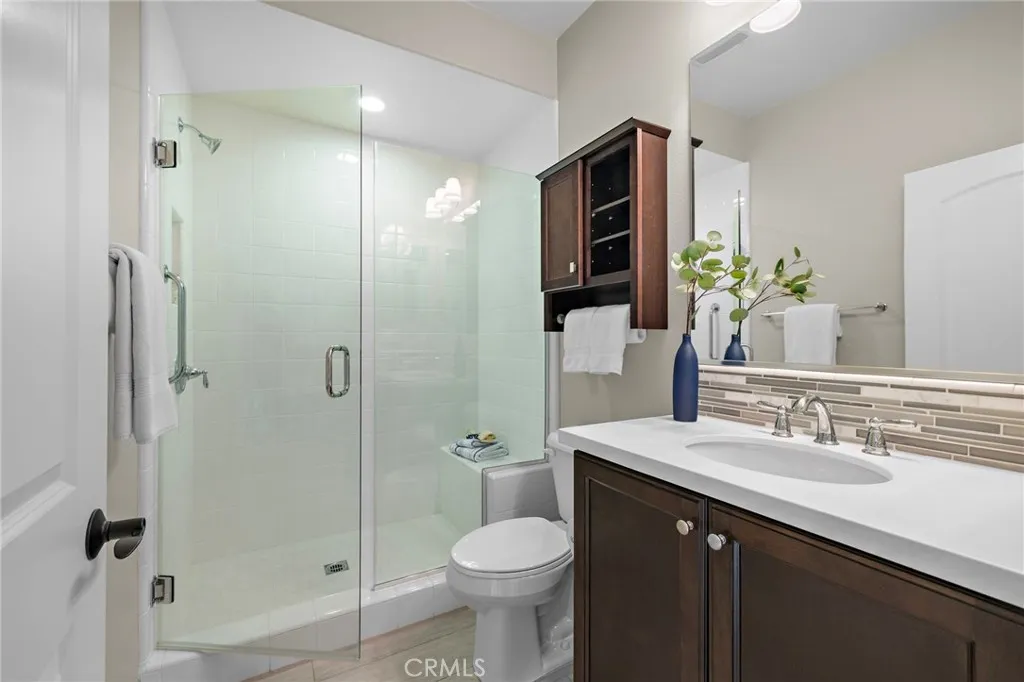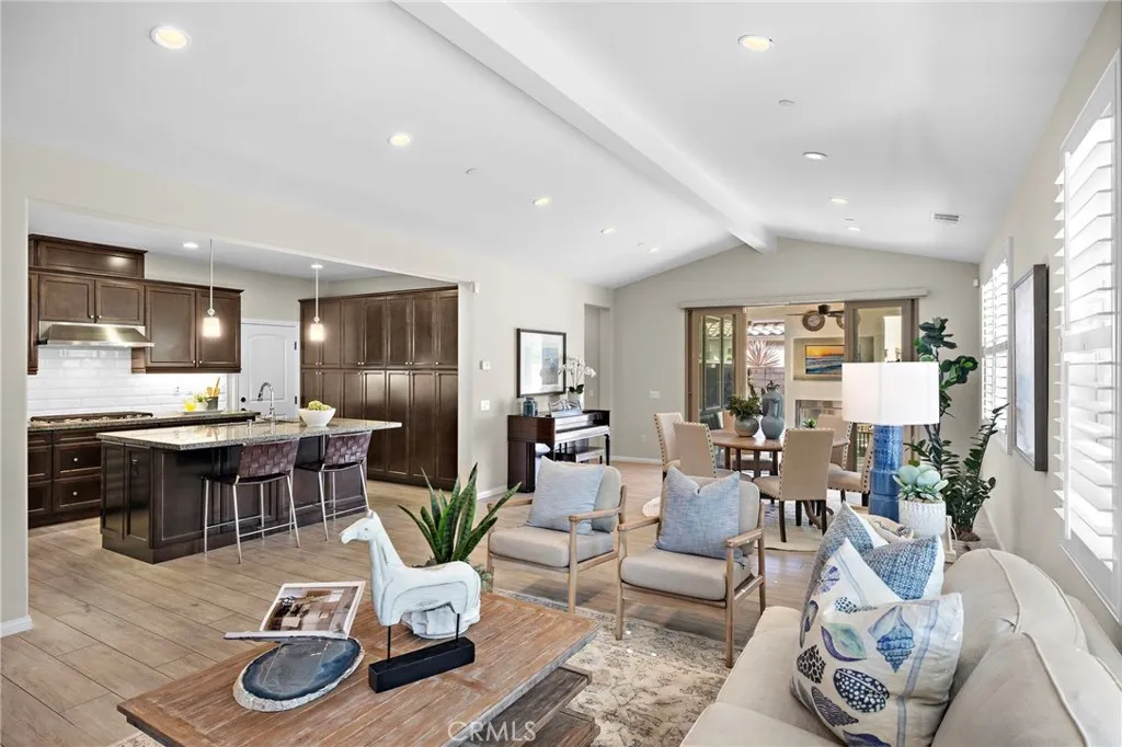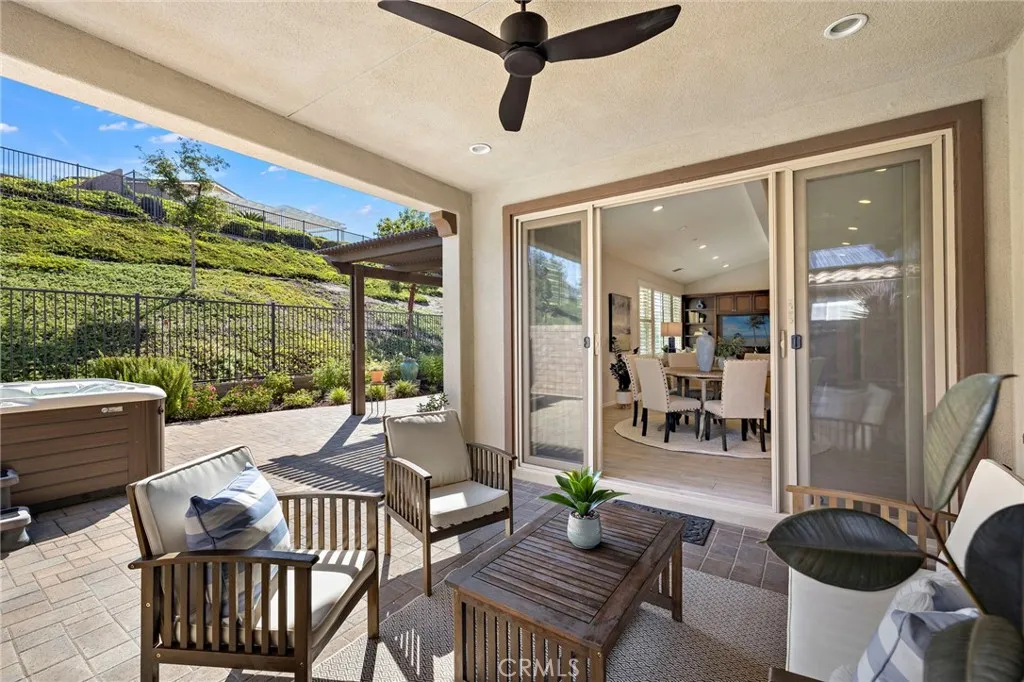 Welcome to this beautifully upgraded single-story home, in the coveted 55+ enclave of Avocet, ideally situated on an oversized, private lot. Offering two bedrooms, two full bathrooms and an office or flex room, this residence is designed for easy living and effortless entertaining. Inside, the open-concept floor plan features a striking built-in media wall with generous storage, plantation shutters, and a spacious dining area. The chefs kitchen showcases upgraded stainless steel appliances, granite countertops, a convenient wine refrigerator, and a full wall of pantry cabinets with roll-out shelving. The serene primary suite offers a beautiful view of the expansive backyard and includes a spa-inspired ensuite bath with an oversized soaking tub, a frameless glass shower, and a walk-in closet with premium custom shelving. A comfortable guest bedroom and a spacious home office provide flexibility for hosting or working from home. Step outside to your private backyard retreatcomplete with lush gardens, custom pavers, a trickling fountain, and a covered pergola with built-in lighting and ceiling fans. Enjoy evenings by the outdoor fireplace, unwind in the above-ground spa, or entertain in the expansive covered outdoor roomthis space is designed for both relaxation and gatherings. As part of the award-winning Rancho Mission Viejo community, enjoy access to an array of resort-style amenities: including The Hacienda and The Getaway, offering amenities like a fitness center, saltwater pool, spa, bocce ball court, yoga studio, and cozy fire pits. Experience the perfect balance of com