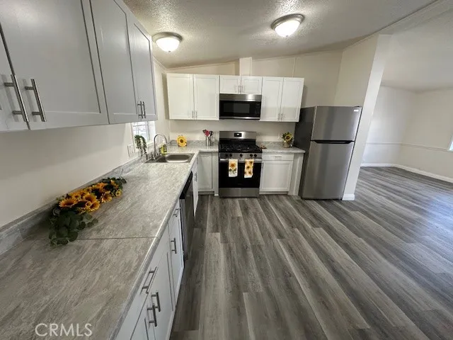 55+ Gated, Lovely, Scenic Community of Casa Del Rey. This 3 Bed, 2 Bath home has been completely remodeled. New kitchen cabinets and counter tops with new stainless steel appliances. New custom paint inside and outside. New bathrooms, Laminate flooring with carpet in the bedrooms. Barn door to the master bedroom bathroom. New water heater and A/C unit. Central heating and Air conditioning. Many upgrades. Park has two clubhouses, swimming pools, enclosed jacuzzi, billiards, TV room, conference room, exercise room and more. WOW all this and if a full price offer you will receive a bonus of a Golf Cart to easily get around our community. Park also has very affordable space rent of $689. Retire in style your way where Casa Del Rey offers you "A little more for a little less".