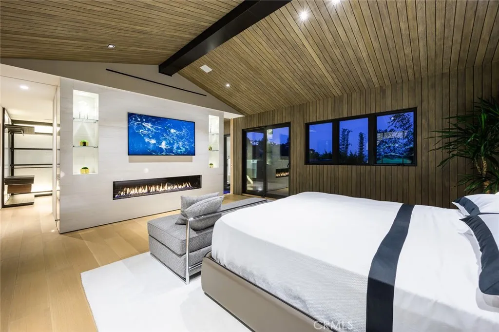 This designer home is located in the prime Bird Streets masterfully and fully remodeled in 2019 by noted designer Michael Palumbo. Designed to the very last detail, an exquisite blend of luxury, privacy, and cutting-edge technology. From the gated secure entry through the private landscaped grounds, this property offers a lavish indoor outdoor entertainment flow, vaulted cedar ceilings, oak floors, dramatic marble fireplaces, Control 4 home automation system as a part of the advanced technology of this home and much more. The lush private grounds include a pool and spa, surrounded by mature hedges and trees for seclusion. An enchanting stone waterfall, multiple fire pit seating areas, built in bbq area, and a covered al fresco dining space create an entertainers paradise. The sleek chefs kitchen is equipped with Miele appliances, Italian cabinets and a skylight that bathes the space in natural light. Two ensuite bedrooms are located downstairsone featuring a fireplace, and the other offering picturesque views with the direct access to the pool. The private primary suite upstairs is a sanctuary of luxury, boasting a vaulted cedar ceiling, a marble fireplace, a spa-like bathroom and a custom closet with an open design. Large glass doors open to a private rooftop deck with a fire pit and panoramic city light views. The state of the art finishes and unparalleled indoor-outdoor flow make this residence feel like a luxurious chalet sanctuaryjust minutes from the best of Sunset Boulevard and Beverly Hills. A special gem that truly defines modern luxury living.