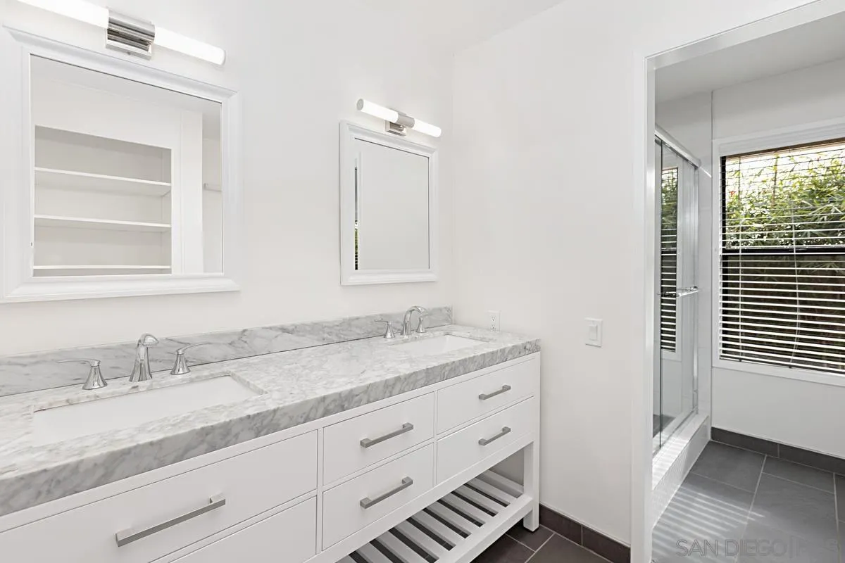 Enjoy the best of North La Jolla living in this spacious 5-bedroom, 4-bath home located near The La Jolla Playhouse, Birch Aquarium, UCSD, medical centers, shopping, and top-rated schools. French doors and large windows fill the home with natural light and create an airy, welcoming ambiance. The kitchen features custom cabinetry, granite countertops, travertine flooring, and stainless steel appliances. The central living area is large enough to accommodate both a living room and dining area, highlighted by a classic brick fireplace that provides a cozy ambience. There are two primary suites—one on each level—along with three additional bedrooms upstairs. The enclosed front yard offers a warm setting for gatherings, while French doors from the kitchen and breakfast area, the living and dining space, and the entry-level primary suite open to the backyard, which includes a covered patio and an outdoor area. This well-situated home offers easy access to freeways, trolley lines, and is just minutes from the coast and all that La Jolla has to offer.