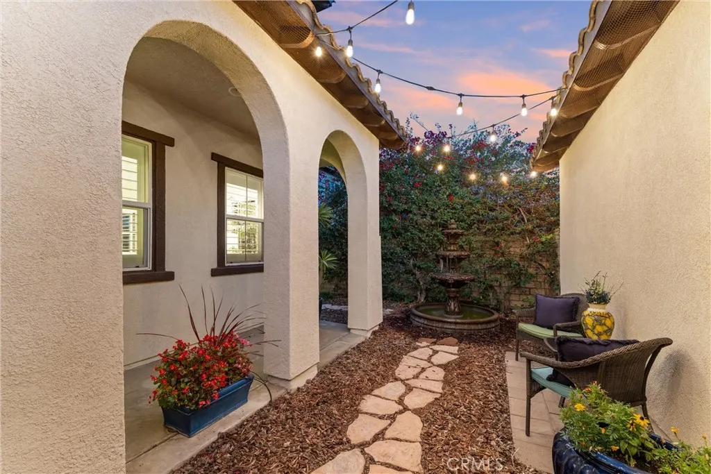 EXECUTIVE HOME | PANORAMIC VIEWS | GUARDED+GATED | REMODELLED KITCHEN | DOWNSTAIRS BEDROOM | OPEN CONCEPT | 3-CAR GARAGE | CUL-DE-SAC | Discover the epitome of elegance in this executive residence, known as the Fountain House, located in the prestigious gated community of The Retreat. Step into the expansive private front courtyard, highlighted by two tranquil fountains - an inviting space to welcome friends or spend peaceful mornings. The custom double-door entry welcomes you into a grand formal entryway leading to the Living Room and adjacent Dining Room, creating an ideal setting for those special gatherings. The Chefs Kitchen features a large island, breakfast bar seating, granite countertops, walk-in pantry, butlers pantry, coffee station, upgraded cabinetry (2023) with soft close doors/drawers, JennAir stainless steel appliances, & double French doors to the spacious backyard - perfect for entertaining any size of gathering. The open-concept Family Room features a gas fireplace and endless windows for panoramic views of snow-capped mountains & end-of-day sunset colors. A convenient downstairs Bedroom + full bath is perfect for multi-gen living or guests. Ascend the sweeping staircase to find your oversized Primary Bedroom with its spa-inspired ensuite - deep soaking tub, dual sinks, oversized walk-in shower, and generous walk-in closet. Bedrooms 3 and 4 are well-sized with a nearby full bathroom, while the expansive Loft is a perfect flex space for office, media room, or play area. A dedicated Laundry Room has folding station, utility sink, and ample cabinets. Ahhhh .