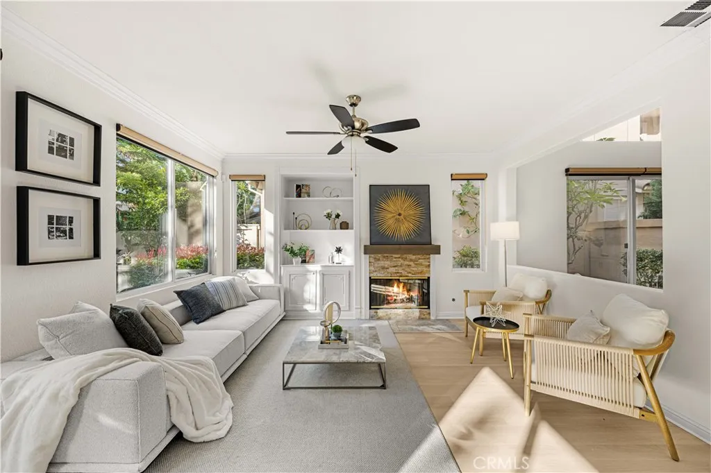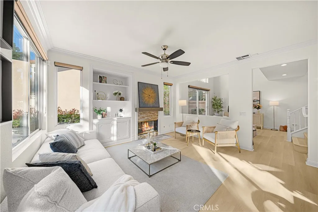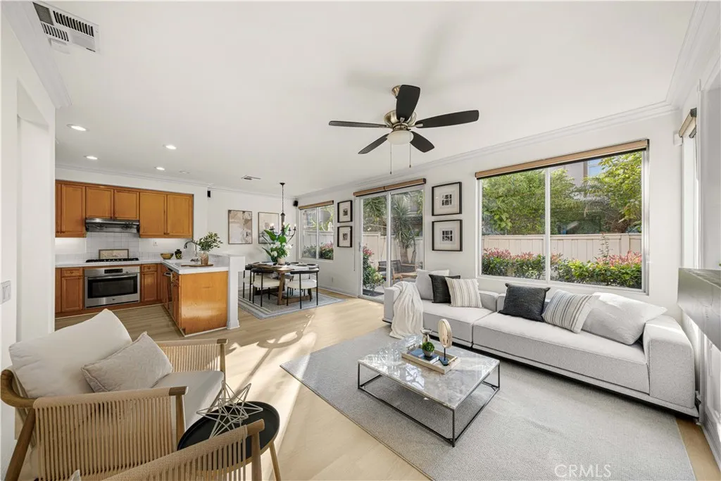 Perched in Irvines coveted Westpark community, 9 Santa Luzia Aisle is an updated detached home offering light-filled space and comfort. From the moment you arrive, a gated front courtyard enhances privacy and creates a welcoming entry. Inside, soaring cathedral ceilings and expansive windows fill the home with natural light. Brand-new flooring and fresh interior paint throughout create a clean, modern feel. The living and dining areas flow together, anchored by an open kitchen with ample cabinetry and counter space, while the adjacent dining area opens directly to the backyard for easy indoor-outdoor living. Upstairs, the primary suite enjoys vaulted ceilings and mirrored wardrobes, while secondary bedrooms offer flexibility for family, guests, or a home office. The attached two-car garage with organizers and a full-size drivewaya rare convenience in Irvineadd everyday practicality. The private, low-maintenance yard offers space for weekend BBQs, playtime, or quiet evenings at home. Westpark residents enjoy resort-style amenities: pools, tennis courts, playgrounds, and more. With low HOA dues, low property taxes, and a central Irvine locationminutes to Crossroads, Westpark Plaza, and Centerstone for shopping, dining, and everyday needs, plus access to the 405, 5, and 55 freewaysthis home is zoned for award-winning Irvine Unified schools, including Plaza Vista K8 a short walk away, and offers lasting value in one of Westparks most desirable settings.