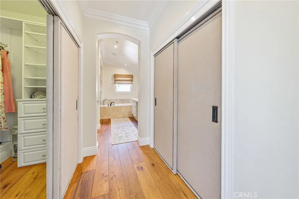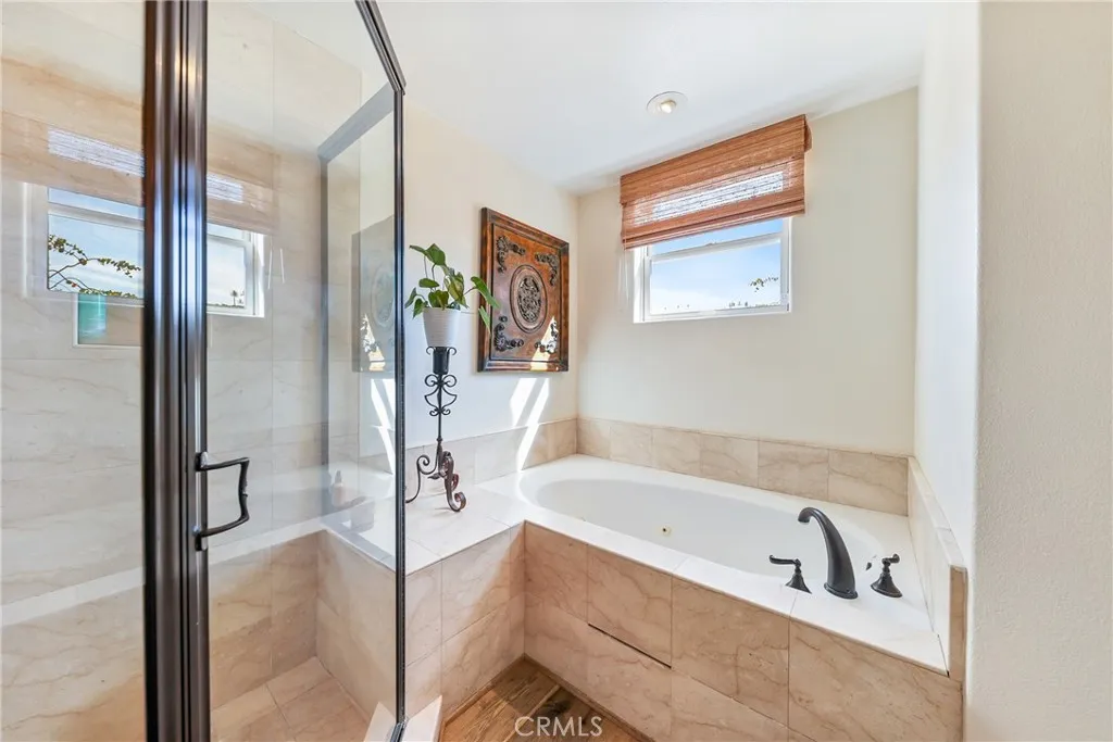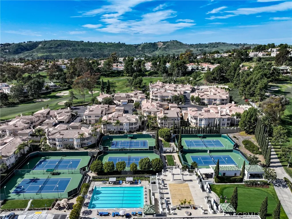 Laid back Luxury and Country Club living at its finest. This UPPER single-level villa with approximately 2285 sq ft overlooks a tranquil greenbelt in what is arguably one of the most desirable locations in the community. Positioned on the upper level with no neighbors above and attached on only one side, the home offers exceptional privacy and serenity. The highly sought-after floor plan creates an immediate sense of grandeur, featuring soaring ceilings, refined architectural details, and a wide, open footprint that lives like a single-family home. Two spacious primary suiteseach with its own en-suite bathare thoughtfully placed at opposite ends of the residence for maximum privacy. A separate, versatile room serves perfectly as a den, home office, or optional 3rd bedroom. Designer upgrades were meticulously curated to elevate both form and function, blending timeless elegance with modern sophistication. Highlights include a custom wine closet, bespoke window treatments, crown molding, rich hardwood flooring with upgraded baseboards, solid wood interior doors with updated hardware, custom fireplace surrounds, upgraded lighting throughout, and a kitchen featuring marble countertops and stainless steel appliances. New HVAC system, new 50 gallon water heater. Large 2 car garage w/built-ins. Residents have the option to separately join the private Marbella County Club, offering world-class golf,tennis, fitnes facilities, classes, pickleball and a Jr. Olympic lap pool. The community is located near award-winning schools and many prestigious private schools. For work Freeway and