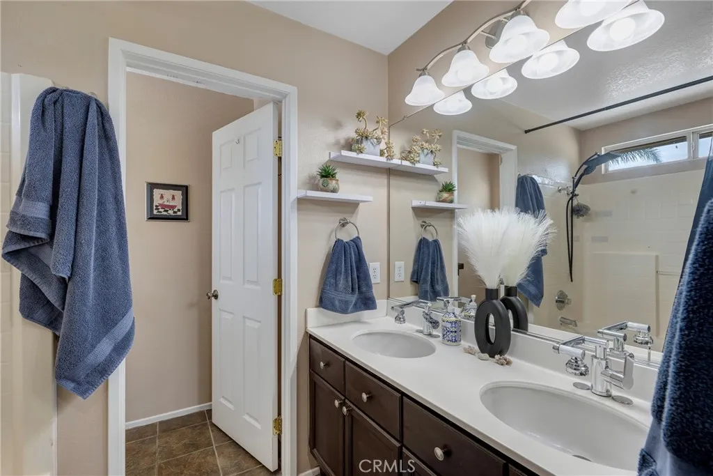 Welcome to this amazing corner lot home located in a very desirable area of Corona! Just pulling up you see pride of ownership along with great curb appeal! As you enter your new home you are greeted with custom tile, high ceilings and an open floor plan. The living room is big with a nice cozy fireplace for those chilly winter nights as well as custom flooring. As the floor plan flows effortlessly into your dining area you will find a beautiful Kitchen with granite counter tops, stainless steel appliances, beautiful floors as well as lots of cabinet space. The adjacent dining area has plenty of room to enjoy family dinners with lots of natural light. Down the hallway you will find your laundry area as well as a half bathroom with custom tile- perfect for guests! As you make your way upstairs and to the left you will find the master bedroom which is large with high vaulted ceilings along with double his and hers closets and of course custom flooring! The master bathroom has double sinks, a tub/shower combo and nice custom tile. Down the hallway you have two really good sized bedrooms each with their own custom flooring and good sized closets and a bathroom that is right next door which also offers custom tile flooring. The backyard has plenty of room, pleasant landscaping, patio cover, with a mix of vinyl fencing and block wall for kids to play, entertaining or just relaxing with perfect functionality. The 2 car garage has plenty of storage and also comes with it's own mini split AC - BONUS - this home comes with affordable solar!! Other great amenities is a gated community