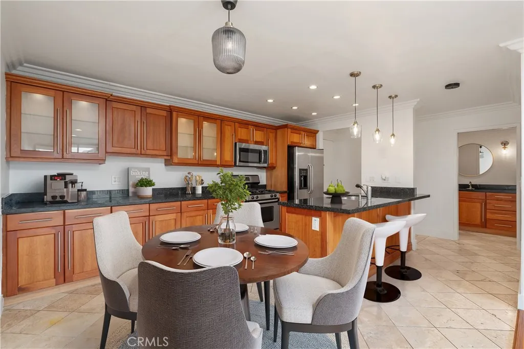 Welcome to your sun-drenched West Hollywood dream home! Perched on the top floor with coveted southwest exposure, this stunning penthouse retreat is flooded with beautiful natural light from dawn to dusk, creating the most inviting atmosphere you could imagine.Step inside and feel instantly at home. The open-concept living space welcomes you with a perfect blend of modern hardwood-style flooring and warm stone tones that flow seamlessly throughout. A contemporary fireplace adds cozy ambiance, while thoughtful touches like recessed lighting and a sleek stainless-steel wine refrigerator elevate everyday living to something truly special. The expansive living room opens gracefully to your private balcony overlooking the sparkling poolimagine starting your mornings with coffee here, or unwinding as the sun sets over West Hollywood.The chef's kitchen is where memories are made! Anchored by a generous island with gleaming granite countertops, it features top-quality stainless steel appliances and abundant cabinetry. Whether you're preparing an intimate dinner or hosting a festive gathering with loved ones, this kitchen makes every occasion feel effortless and joyful.Your serene bedroom sanctuary offers both a spacious walk-in closet and an elegant sliding glass wardroberoom for everything you love. The spa-inspired bathroom is your personal oasis, featuring a stylish vanity, a luxurious rain shower system, and invigorating body jets that transform your daily routine into pure relaxation.Nestled on the beautiful, tree-lined Kings Road, you're perfectly positioned near the exciteme