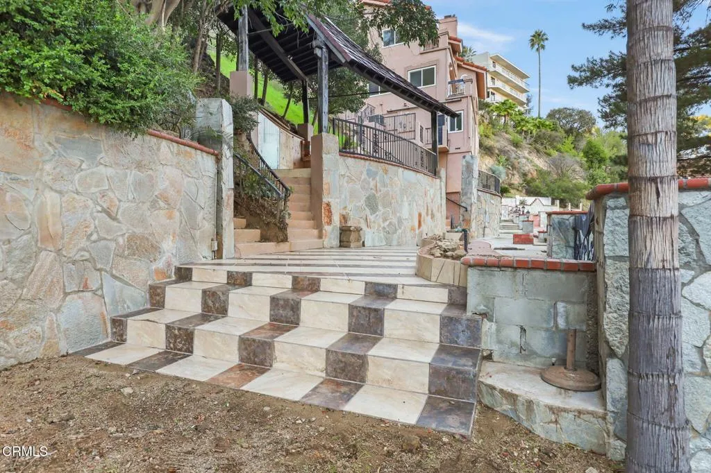 Perched in the hills above Pasadena's coveted Linda Vista neighborhood, this impressive Mediterranean home showcases sweeping, unobstructed views of the Rose Bowl, the San Gabriel Mountains, and the picturesque Pasadena landscape. Offering 3 bedrooms, 4 bathrooms, plus an office/den, the property is sold with a second parcel and features refined living spaces, graceful arched details, and expansive windows that frame stunning vistas from nearly every room.The main level enjoys a warm, open floor plan anchored by a spacious living room with a striking two-way fireplace and custom mantel. Adjacent is the office/den and an updated powder room. The generous dining area, surrounded by picture windows, opens to a charming balcony through floor-to-ceiling sliding glass doors--an ideal spot to soak in the view. The updated kitchen features a breakfast bar, stainless-steel appliances, recessed lighting, and beautiful new cabinetry.Upstairs, the primary suite offers breathtaking panoramic views and an en-suite bath with a jetted tub and separate shower. A second upstairs bedroom also includes its own en-suite bathroom. The lower-level bedroom, with its private entrance, provides versatility of use for an owner, guest, or creative studio space. Multiple terraces and patios adorned with classic wrought-iron accents create inviting settings for outdoor dining, lounging, and entertaining. The laundry room is located on the lower level, and the large attached two-car garage provides extra convenience.The additional parcel is included in the sale--approximately 8,220 square feet (for a com