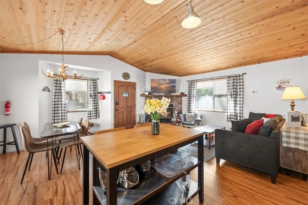 Single-level mountain getaway in the desirable Peter Pan area of Big Bear City! This 2 bedroom, 1.5 bath home features vaulted t&g ceilings, an open floor plan, and a cozy wood-burning fireplace. The spacious fenced lot offers room for RV and boat parking, plus a dog run and large storage shed. Enjoy outdoor entertaining on the patio with new pavers and a firepitperfect for mountain evenings. Recent upgrades include a new water heater and vinyl fencing. Currently an active vacation rental, this turnkey property is ideal as a full-time home, weekend escape, or investment opportunity.