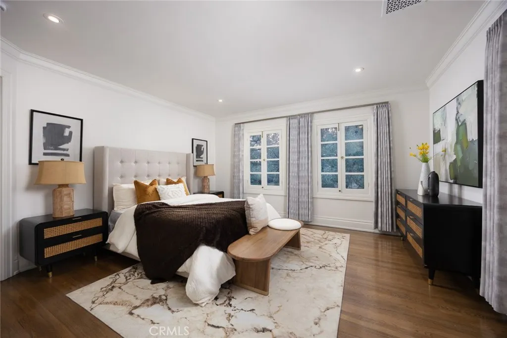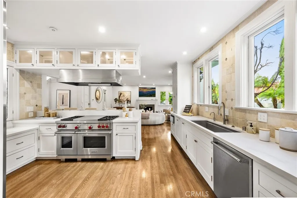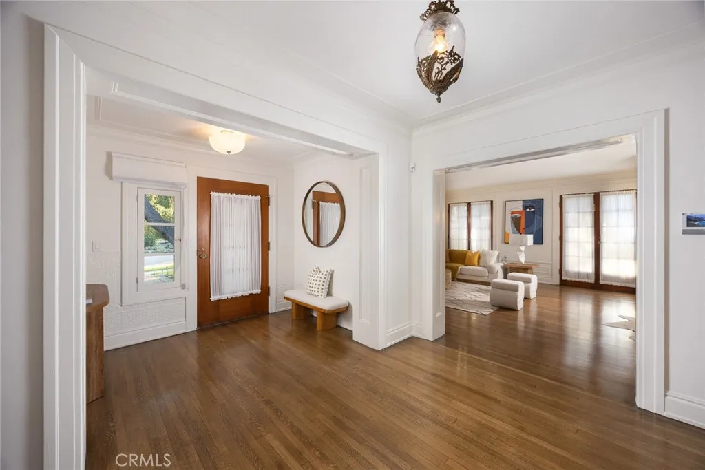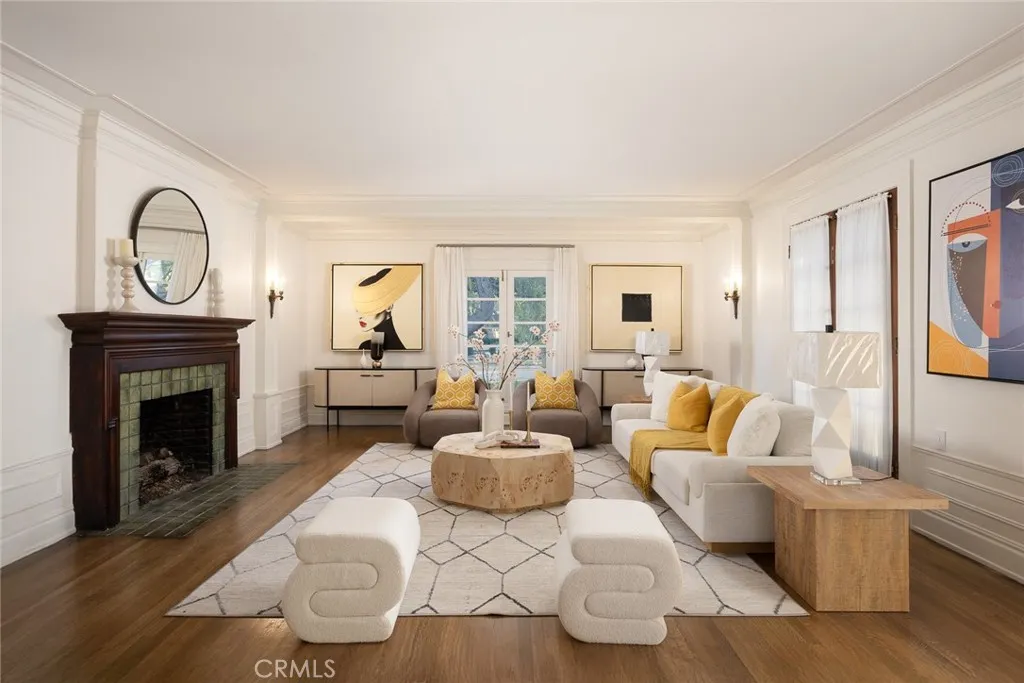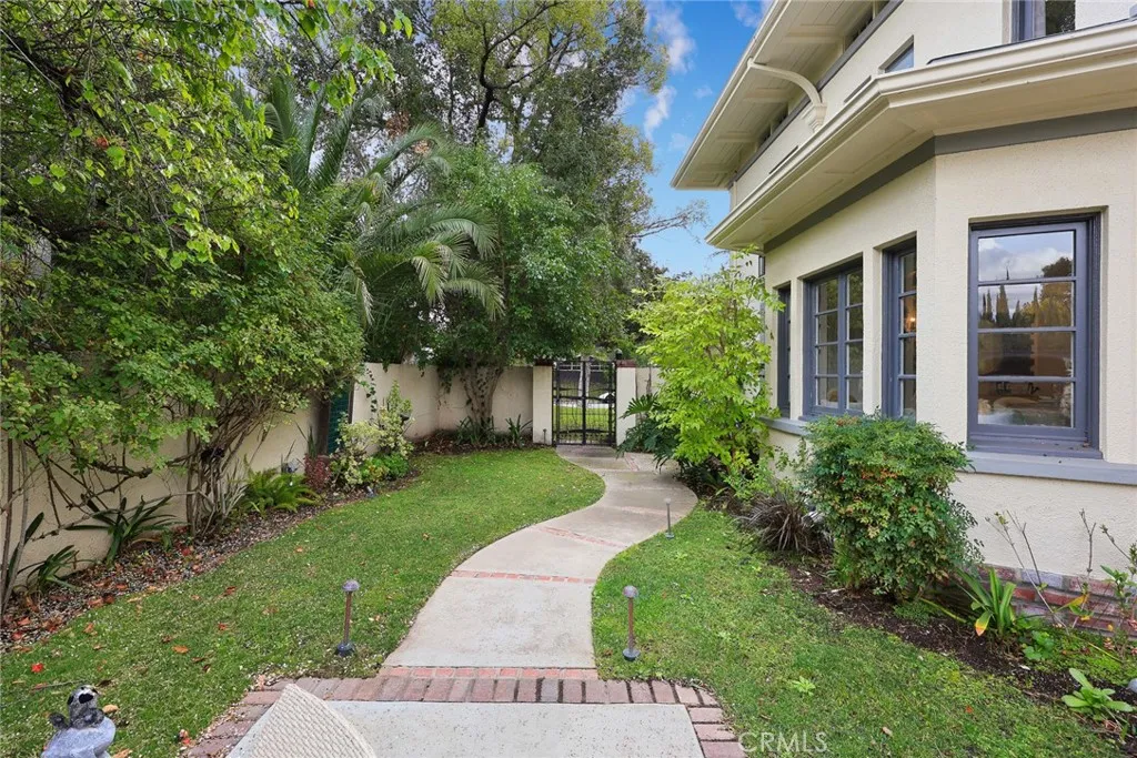 This timeless and stunning Italian Mediterranean Revival estate sits prominently on a generous corner lot in Pasadenas prestigious Madison Heights neighborhood. From the street, the homes striking architectural symmetry is framed by a majestic, vine-draped pergola that serves as both a shaded sanctuary and an elegant porte-cochrean unforgettable first impression. A gracious foyer introduces the homes Old World soul, where masterful craftsmanship blends seamlessly with modern refinement. The formal living room is bathed in natural light and anchored by a rare Batchelder tile fireplace, with multiple sets of French doors that create a beautiful indoor-outdoor flow. Just beyond, a charming trellis extends the living space outside, perfect for relaxed California living. The richly appointed office features custom wood built-ins and its own Batchelder fireplace, offering a warm and inspiring retreat for work or study. At the heart of the home, the chefs kitchen is both bright and highly functional. It showcases newly refurbished custom cabinetry, crisp quartz countertops, high-end stainless steel appliances, and a classic farmhouse sink. A traditional butlers pantry connects seamlessly to the formal dining room, where bay windows and a vintage chandelier provide an elegant backdrop for gatherings. The kitchen opens to a sun-drenched family room, creating an ideal setting for everyday living. A charming basement wine grotto offers an intimate setting to relax and enjoy time with friends. From the family room, French doors lead to a private backyard oasis complete with a sparkling