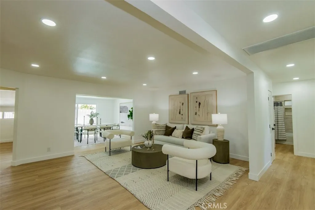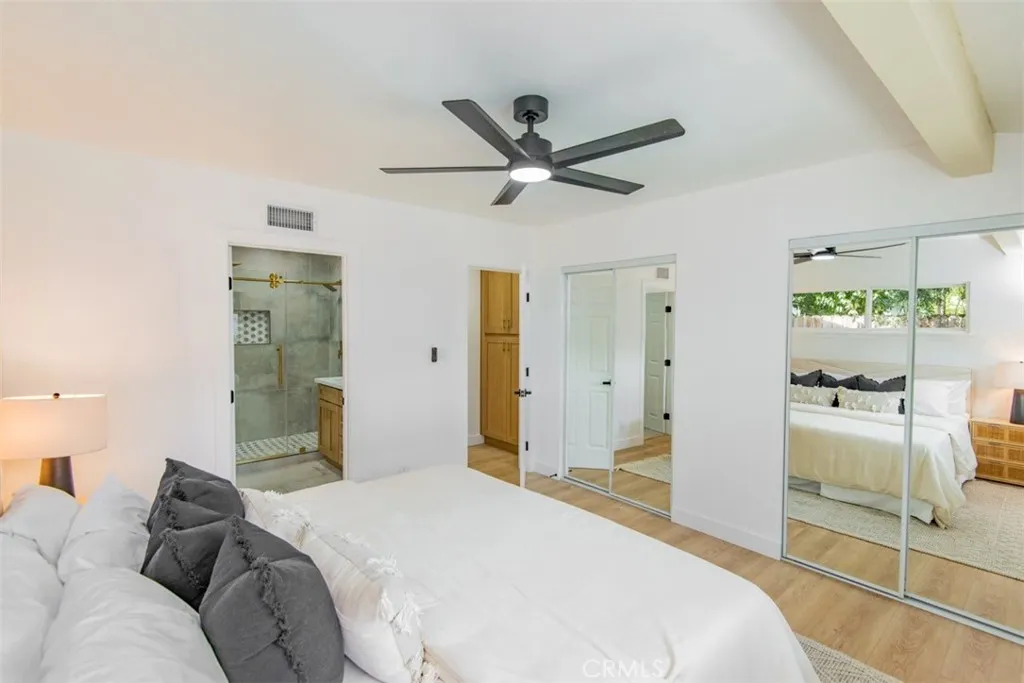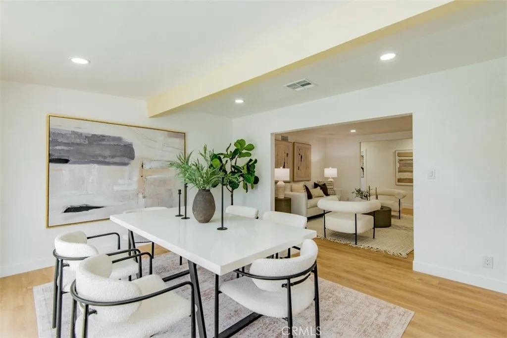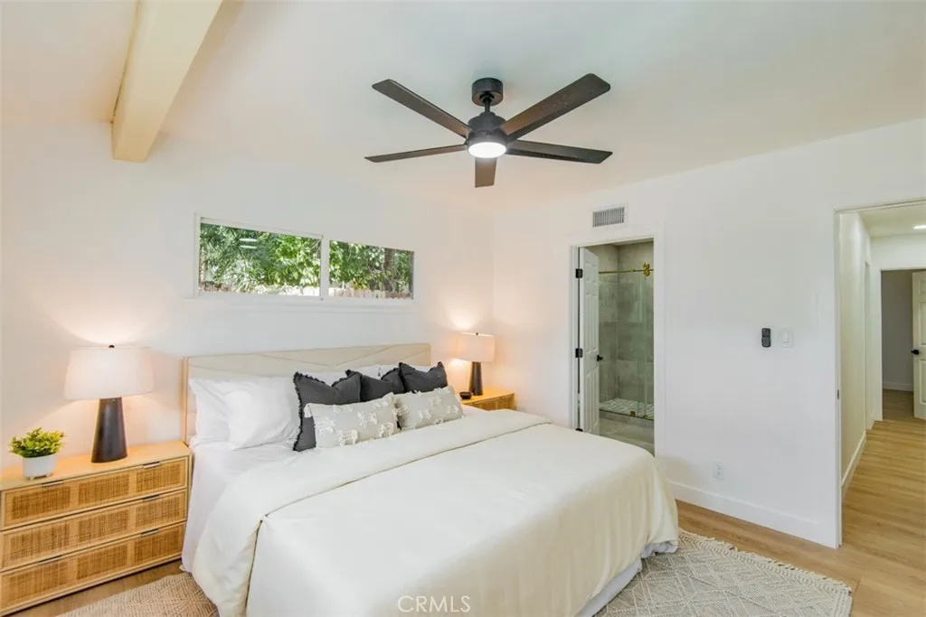 Welcome to this stunningly reimagined North Hills residence where classic character meets modern luxury. Completely renovated with thoughtful design and high-end finishes, this four-bedroom, three-bathroom home delivers the perfect balance of style, comfort, and functionality. Inside, an airy open-concept layout is filled with natural light and highlighted by striking beamed ceilings and expansive living spaces designed for both entertaining and everyday living. The show-stopping chefs kitchen features warm oak cabinetry, quartz countertops, premium stainless-steel appliances, designer lighting, a spacious pantry, and a wine refrigerator all flowing effortlessly into the dining and living areas centered around a beautiful fireplace. The primary suite is a private sanctuary featuring dual closets and a spa-inspired bathroom with a sleek walk-in shower, dual oak vanity, and designer tile finishes. Two additional bathrooms have been stylishly updated, while each bedroom offers generous space and abundant light. Sliding glass doors create seamless indoor-outdoor living, opening to a beautifully landscaped backyard with a sparkling pool at its center the perfect setting for entertaining, relaxing, and enjoying Southern California living. Extensively upgraded throughout with new flooring, plumbing, electrical, sewer line, fully paid solar, HVAC, windows, doors, and fully renovated kitchen and baths and a spacious 2 car garage, this home offers turnkey living with lasting peace of mind. Conveniently located near CSUN, top schools, parks, hiking trails, and premier shopping and d