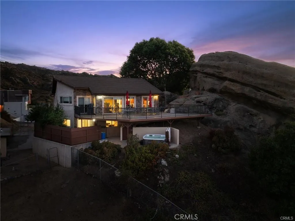 Warm and Welcoming Santa Susana Knolls Custom Home with Magnificent Views! This beautiful and unique custom home was designed to maximize breathtaking views atop the charming Santa Susana Knolls neighborhood. Enter into a light & bright living room graced by a rustic fireplace and views to the dining room, gourmet kitchen and family room beyond. A secluded sitting area, shaded by the majestic boulder, offers a peaceful & meditative moment to relax and unwind. The remodeled kitchen is a chefs dream with stainless appliances including an oversized gas range, 2 ovens, refrigerator, trash compactor, microwave, wine refrigerator and warming drawer. Granite counters, pendant lights, a custom backsplash and lovely garden window above the sink enhance the beauty of this heart of the home. The large pantry with pullout drawers, self-closing cabinetry with custom designer accents and center island with additional seating add practical benefits enjoyed by all. The den/family room is steps away and offers a wet bar and very flexible space for a home office, media room, game roomyou decide! Sliding glass doors welcome you onto the spacious rear deck with the most stunning views in every direction. An ideal location for entertaining guests, the deck offers space for many to sit, dance, or play. The 2 spacious secondary bedrooms each have a charming balcony with superb mountain and sunset views. The hall bath has been remodeled with custom cabinetry, stone counters, dual sinks & soaking tub. The primary suite is located at the end of the hall offering added privacy, a large walk-in closet