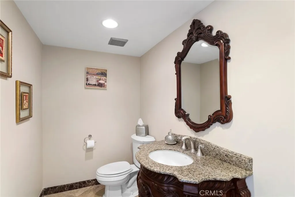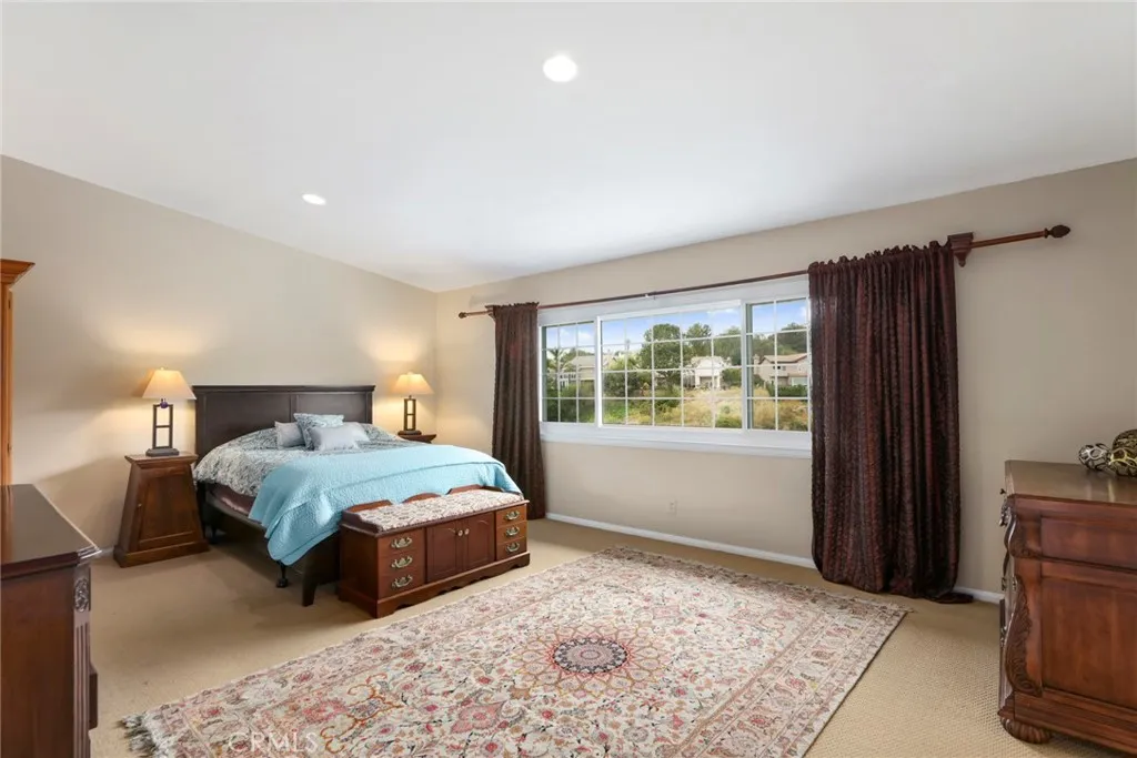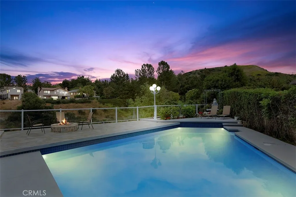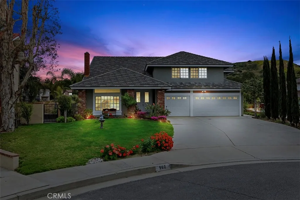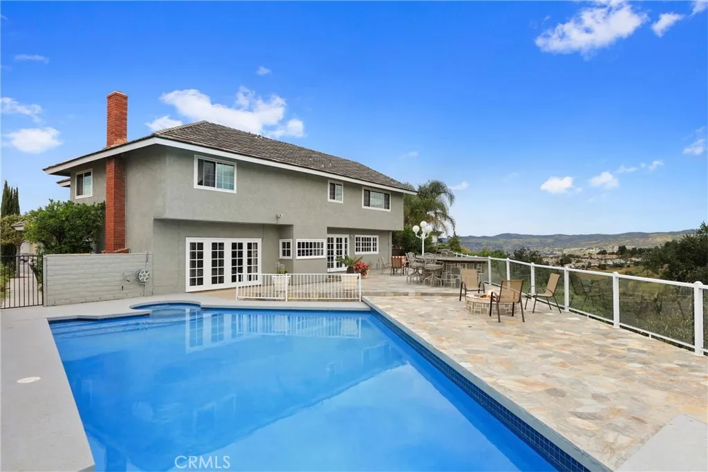 Breathtaking panoramic canyon views await you atop a tranquil cul-de-sac in Anaheim Hills. Nestled on a hillside is this nearly 3400 SF 5 bedroom, 2 and a half bath residence. Interior amenities include crown molding, raised panel doors, beautifully upgraded stone-infused bathrooms, and a neutral paint palette throughout. A welcoming tile porch entry and large grassy lawn invites you inside. Be delighted by the spacious living room with warming fieplace, soaring vaulted ceilings, and the adjacent light-filled dining room. The light and bright island kitchen boasts granite countertops, custom range hood, and opens to the oversized family room with beamed ceilings, sizable wet bar and built-in media center. Retire upstairs to the immense primary suite with dual vanities, spa-like shower and enjoy the sumptuous soaking tub. The additional four large secondary bedrooms complete the second level. Take in the spectacular views from the expansive yard, featuring a sparkling pool and spa, coy fire pit, and granite and stone BBQ center. Complete with a 3-car garage, this home has the incredible location, floor plan, and amenities you have been waiting for.
