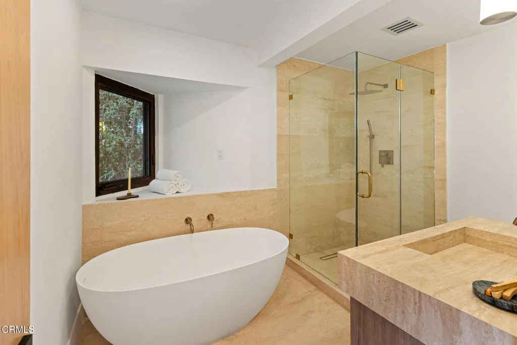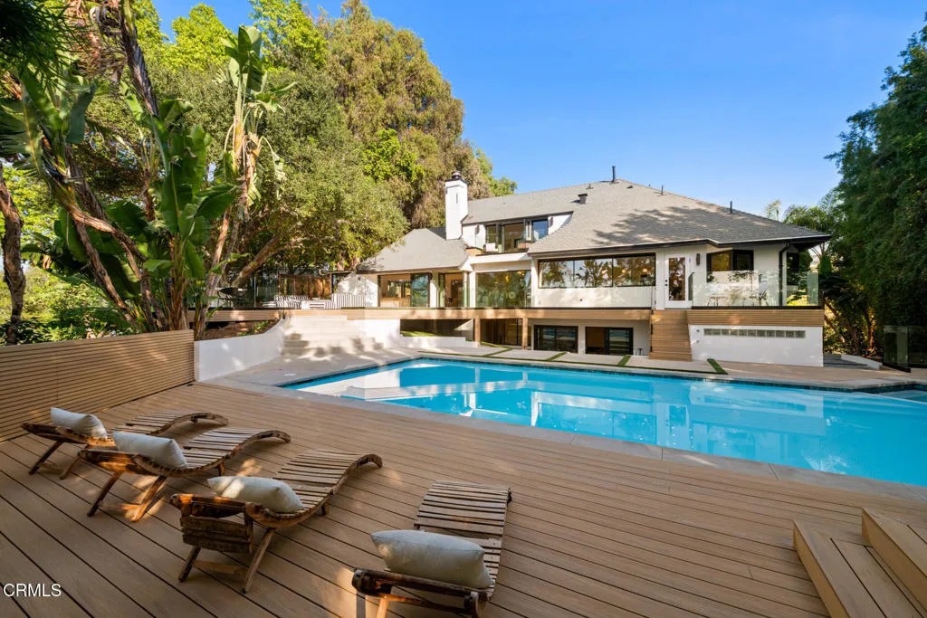 Tucked behind a long private driveway and secured by double gates, this newly renovated residence offers exceptional privacy and tranquility within the exclusive gated enclave of Oak Pass Road--an intimate Beverly Hills community celebrated for its serene setting and notable celebrity residents.Surrounded by mature landscaping and natural canyon beauty, the 4,000+ square-foot home is a peaceful retreat just minutes from the world-class shopping, dining, and lifestyle offerings of Beverly Hills. The main level welcomes you through a striking grand pivot entry door into an open, light-filled floor plan designed for gracious living and entertaining. Architectural highlights include vaulted ceilings, a central fireplace, refined custom details, wide-plank French oak flooring, and designer Spanish alabaster lighting throughout.The expansive chef's kitchen seamlessly blends elegance and functionality, showcasing striking Taj Mahal marble countertops, a center island, breakfast nook, abundant storage, and top-of-the-line Miele and Viking appliances--ideal for both everyday living and effortless entertaining.The upper level is dedicated entirely to the primary suite, a private sanctuary complete with a fireplace, balcony, walk-in closet with custom built-ins, and a spa-inspired ensuite bathroom adorned with full-slab travertine stone finishes.The lower level offers a spacious entertaining lounge with direct access to the pool and outdoor living areas, creating a seamless indoor-outdoor experience. The backyard is framed by sleek glass railings that preserve unobstructed canyon view