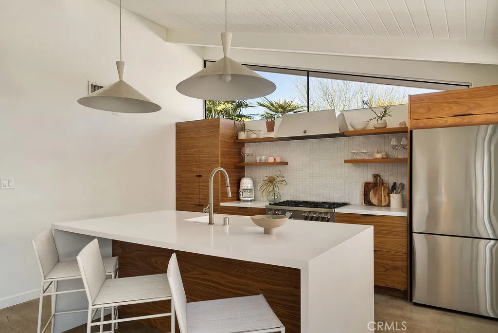 Price Improvement! Experience the ultimate Palm Springs lifestyle at 965 E Twin Palms, more than just a home, its an elevated way of living in the legendary Twin Palms neighborhood. Perched on a coveted corner lot, this iconic residence epitomizes mid-century modern elegance, thoughtfully updated and infused with a contemporary, artistic warmth that honors its legendary design heritage. Designed by the acclaimed modernist architect William Krisel AIA, this three-bedroom, two-bath sanctuary is a harmonious blend of timeless architecture and modern comfort. Imagine breathtaking mountain vistas wrapping the home in a natural embrace, with no southern or western power lines to distract from the panoramic views or the serene desertscape. Every inch of this property echoes a meticulous reimagination, an artistic reinterpretation that respects the original integrity while embracing sleek, modern lines and open, airy spaces. Step inside to discover floods of natural light streaming through clerestory windows, accentuating premium materials from the bath consists of Calcutta Viola Marble to appliances that elevate daily living. The 2021 interior renovation ensures modern convenience with updates to HVAC, pool, pool equipment, windows, doors, and systems, blending style with function seamlessly. Nestled in one of Palm Springs most vibrant neighborhoods, youre just moments from legendary downtown Palm Springs, lively social hotspots, and cultural gems, offering the quintessential desert city experience. Whether relaxing by your private pool, entertaining friends, or simply soaking in