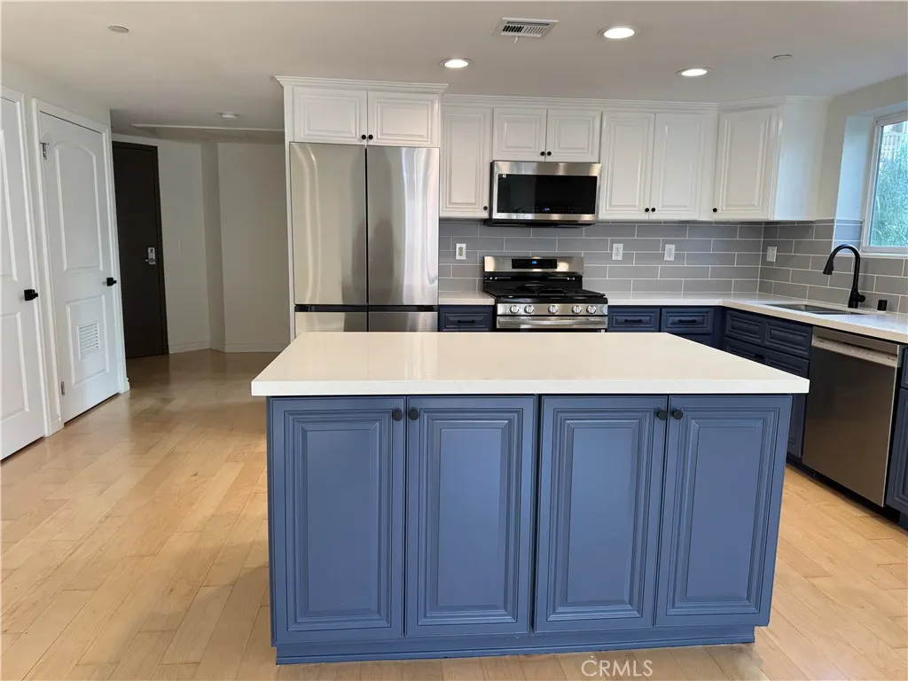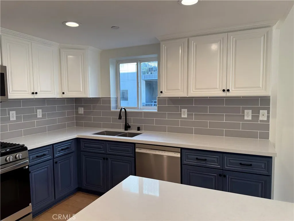 Welcome to this stunning, fully remodeled 3-bedroom, 2-full-bath corner unit in the heart of Koreatown. Just completed in 2026, this Designer-Done residence offers a level of craftsmanship and finish rarely seen in the building. The show-stopping chefs kitchen is the centerpiece of the home, featuring custom dual-tone cabinetry in a sophisticated rich navy and crisp white palette, accented with matte black hardware and pristine white quartz countertops. No expense was spared in the premium appliance suite, which includes a Samsung Bespoke 4-door French-door refrigerator with a hidden Beverage Center, a Wi-Fi-enabled smart gas range, and a whisper-quiet Bosch dishwasher. The open-concept living area flows seamlessly into a bright dining space highlighted by a modern statement pendant, perfect for both everyday living and entertaining. Retreat to three generously sized bedrooms with brand-new carpeting, offering comfort and privacy. Both bathrooms have been refreshed with quartz vanity tops, square vessel sinks, and sleek matte black fixtures. Additional highlights include In-Unit Laundry, two tandem parking spaces, and an assigned LARGE PRIVATE STORAGE in the garagea rare and valuable feature in the area. Ideally located just one block from two major shopping malls and within walking distance to Koreatown Plaza, Galleria Market, and Wilshire Center, this home offers unbeatable convenience and vibrant city living.