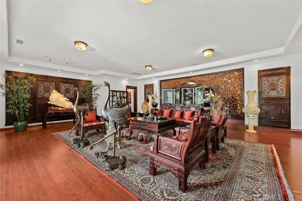 Located in the prestigious estate area of San Marino, this distinguished Georgian Colonial residence offers a rare blend of timeless architecture, refined luxury, and notable historical provenance. Originally constructed in 1918, with historical accounts attributing its origins to Henry E. Huntington, founder of the Huntington Library and Huntington Hospital, the property encompasses approximately 10,458 square feet and has been meticulously maintained, preserving its architectural integrity while incorporating modern amenities. Sited on an expansive 2.29-acre parcel, the property offers exceptional land value and usability, complemented by a long, private driveway with ample on-site parking capable of accommodating large gatherings with ease. Set behind wrought-iron gates and mature landscaping, the residence enjoys exceptional privacy and a strong sense of arrival. The grand interior features soaring 12-foot ceilings, elegant chandeliers, rich wood detailing, and graciously scaled formal spaces, with an elevator and sweeping staircases providing access to all levels. Designed for both formal entertaining and comfortable daily living, the residence offers a thoughtfully balanced floor plan. The primary suite serves as a private retreat with a jacuzzi tub, walk-in shower, expansive walk-in closet, and a separate sitting area, while six additional ensuite bedrooms provide ample comfort and privacy. Formal living areas include a grand dining room, stately library, conference room, and a private cinema, complemented by a fitness room, massage and barber room, multiple wet bars