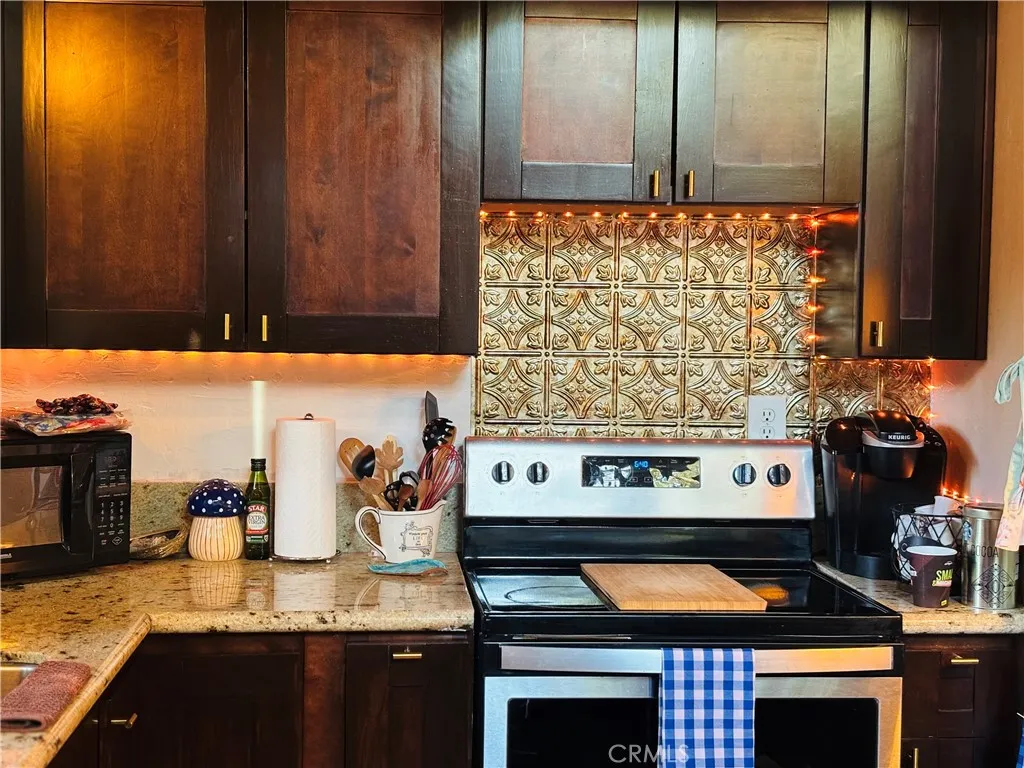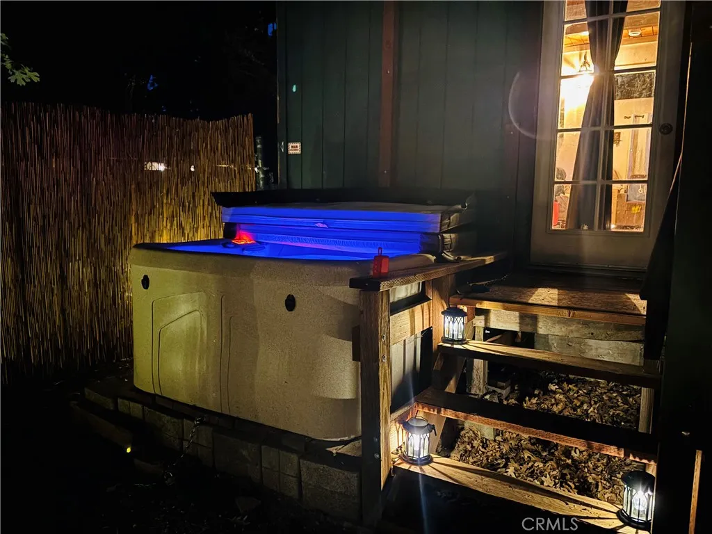 Good things come in small packages, just like this amazing light and bright chalet ready to generate you income when you're not using it. It has an updated kitchen with stone countertops & beautiful cabinetry, an open floor plan, updated bath, magical private back yard and soothing spa. It was recently replumbed and has a new tankless water heater, newer roof, dual pane windows, and the exterior paint is fresh. The outside feels even more spacious because it's located next to a large empty corner lot. It's being sold fully furnished with brand new furniture and a newly issued short term rental permit.
