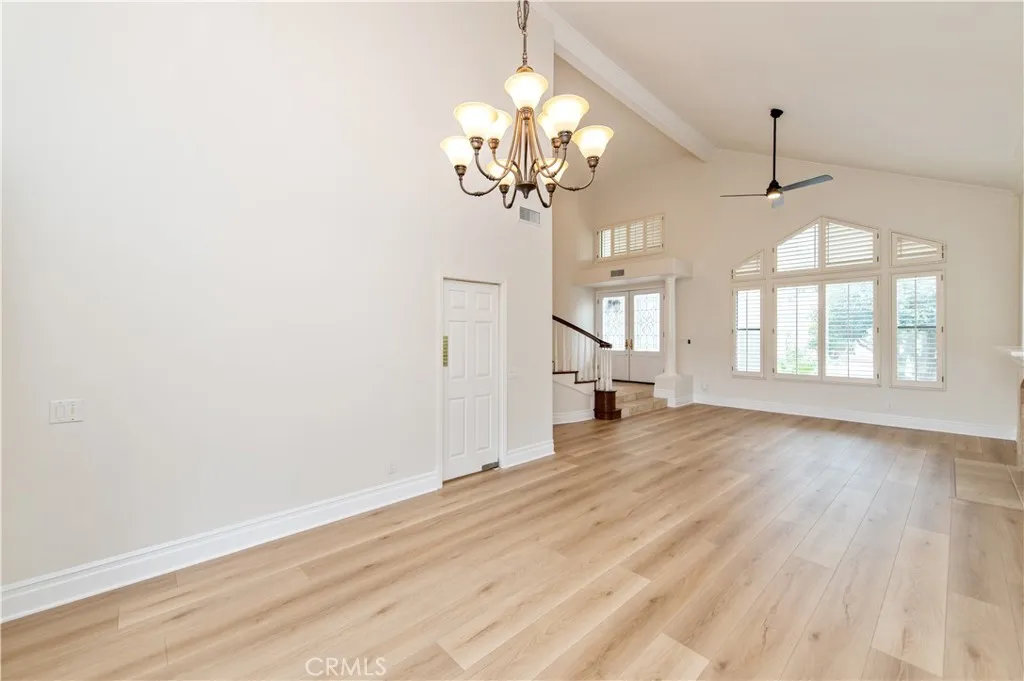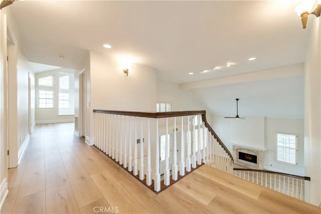 Welcome to 22201 Wayside, a beautifully updated home in the guard-gated community of Canyon Crest Estates. Freshly painted throughout with brand new wood flooring, this 4 bedroom plus bonus room, 3 bathroom residence offers approx. 3,434 sq. ft. of living space with a 3-car garage. The dramatic curved staircase entry leads to formal living and dining rooms and a family room with brick fireplace and built-ins. The gourmet kitchen features a large center island, granite countertops, refrigerator, and custom cabinetry. French doors open to a private backyard with paver hardscape and water fountain. The primary suite offers dual vanities, soaking tub, natural stone finishes, and a private balcony with panoramic views of Lake Mission Viejo, city lights, and surrounding hills. Community amenities include pools, spa, tennis, fitness center, clubhouse, and close distance to Lake Mission Viejo.