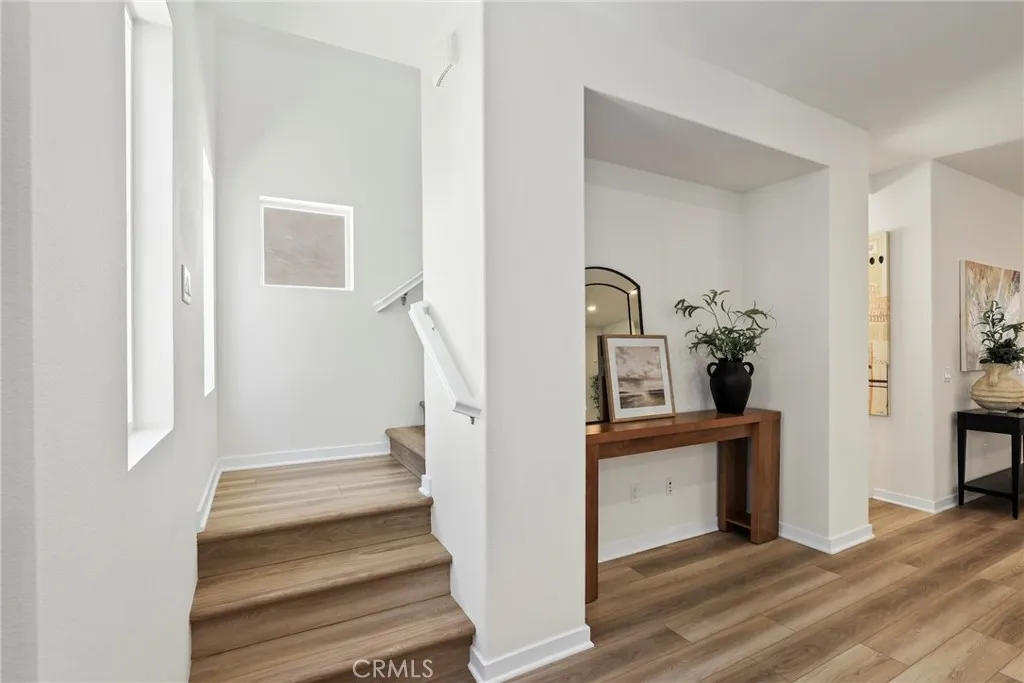 Enjoy this stunning 4-bedroom, 2 full bath, 2 half bath tri-level home in the highly sought-after gated Ponte Vista community, situated on the border of Rancho Palos Verdes and San Pedro. Built in 2022, this energy-efficient residence offers approximately 1,855 sq ft of modern, functional living space enhanced with thoughtful upgrades throughout. The ground-level bedroom is perfect for a home office, gym, or guest bedroom, featuring a nearby half bath, private patio access, and direct entry to the spacious two-car garage. The second floor showcases a bright open-concept layout with a generous great room, dining area, and chefs kitchen complete with quartz countertops, stainless steel appliances, upgraded cabinetry, a custom backsplash, and a large center island. A walk-in pantry provides additional storage and convenience. Upstairs, the luxurious primary suite offers a spa-like retreat with dual vanities, a soaking tub, glass-enclosed shower, and a custom Elfa walk-in closet system. Two additional bedrooms with upgraded closets, a full bathroom, and a convenient laundry area complete the top floor. Premium features include a fully paid 3.5 kW solar system, dual-zone central AC controlled by two Ecobee smart thermostats, a salt-free water softener, and a built-in EV charger. The garage boasts epoxy flooring, ceiling-mounted storage racks, and wall shelving for optimal organization. Outdoors, enjoy a custom paver patio ideal for entertaining. Resort-style amenities include a heated pool and spa, BBQ and fire pit lounge, fitness center, clubhouse, dog park, playground, scenic