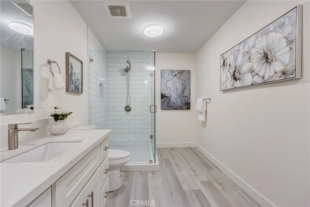 Welcome to your brand new home featuring all new construction from the ground up which has never lived in, nestled in a gated, tranquil neighborhood of only 16 units, offerring peace of mind and modern comforts. The home features: new plumbing, new electrial, new double-paned windows, reinforced walls, new HVAC, new kitchen with white shaker-style cabinets and Carra white quartz countertops, new luxury vinyl plank flooring. Upon entering this beautiful home you'll find a cheerful, welcoming atmosphere with a large living room and dining area which open to a private patio, a secluded oasis for enjoying the fresh air and creating a versatile space for both intimate meals and lively gatherings. Wake up with the warm, natural light that floods both bedrooms each morning. Never worry about parking or inclement weather with a secure 1-car garage with direct access to your home and a covered parking space with additional storage. Step out of your front door into a charming, walkable neighborhood with a variety of delicious dining options, serene parks and shopping, offering a vibrant yet peaceful lifestyle in the heart of Arcadia.