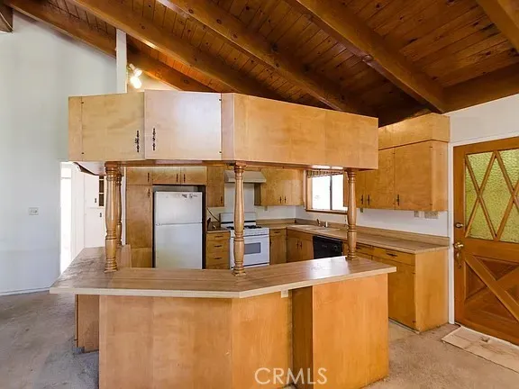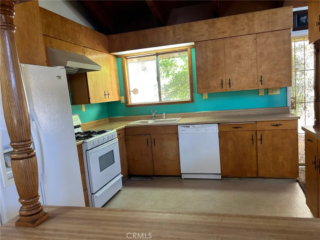 BRAND NEW CARPET, FRESH NEW INTERIOR PAINT, & BRAND-NEW STAINLESS KITCHEN APPLIANCES on order...This charming home features level entry and stunning cathedral wood ceilings, offering 4 bedrooms and 2 baths, plus a 2-car garage with a large, heated workshop and extra parking. Fresh paint and new carpet make it move-in ready. The entry level has two bedrooms and a 3/4 bath, one with its own outdoor access. Upstairs, youll find two primary bedrooms with a full bath. The property includes RV or boat parking, a spacious laundry room, and a walk-in pantry. The upper floor boasts tall knotty pine ceilings throughout the bedrooms and expansive living room, a roomy kitchen with ample cabinets and counter space, and a formal dining area opening to a patio. Enjoy the floor-to-ceiling brick fireplace, a wraparound front deck, and a concrete rear patio perfect for play. Forced air heating. This commuter-friendly home is just minutes from schools, Lake Gregory recreation, fishing, and hiking. Experience a peaceful mountain lifestyle with four seasons, away from city noise and traffic, in a neighborhood with a private setting, set back from the main road.