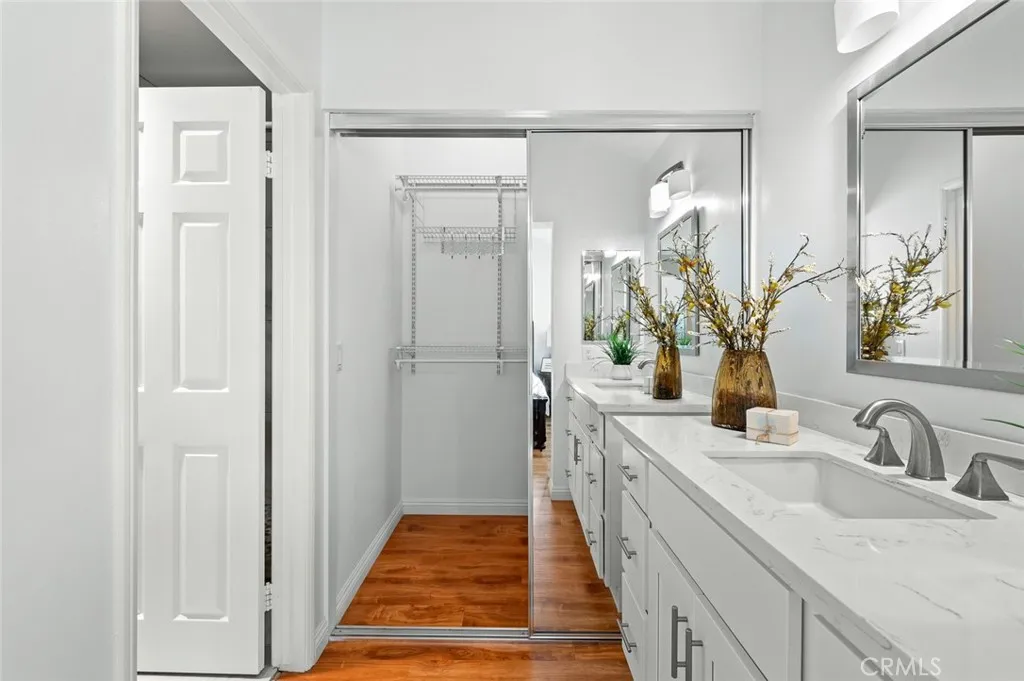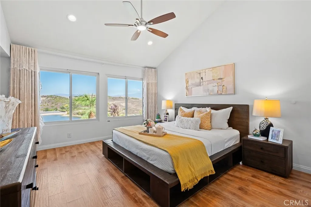 Enjoy breathtaking golf course and lake VIEWS from this stunning townhome located on a rare, oversized lot in the exclusive, GATED Turtle Rock Pointe community in Irvine. warm, wide-planked laminate wood floors, plantation shutters, vaulted ceilings, recessed lighting. bright and open floorplan. Enter into the inviting living room with large, light-catching windows that seamlessly flows to the formal dining room. The adjacent upgraded kitchen is well-appointed with fresh white cabinets, quartz counters, tile backsplash and breakfast bar. The kitchen opens to the family room featuring built-in cabinets and sliding doors to the backyard. A main floor bedroom offers convenience and privacy for guests and is adjacent to the remodeled full downstairs bathroom. Upstairs, the master suite boasts soaring ceilings, a walk-in closet and a remodeled en-suite master bathroom with dual vanities, luxurious soaking tub and walk-in shower. Down the hall, a second master suite features a remodeled en-suite full bathroom with a walk-in shower. Relax in the serene backyard featuring a built-in BBQ and panoramic views of the golf course and lake. Located just minutes to hiking and biking trails, award-winning Irvine schools, John Wayne Airport, and upscale shopping & dining options.
