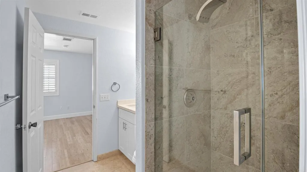 Spacious private end unit. Fabulous views. Completely remodeled. New quartz counters and hardwood floors throughout. New roof. Large two car garage plus large additional storage area for use as a playroom, exercise or craft room (26' x 8') . Extraordinary community facilities. Two primary suites upstairs. Bedroom 1, on the main living level makes a great guest room with its direct access to a full bath. End unit balcony has a great view (as do most rooms) and is accessed through living room French doors or kitchen slider; perfect for entertaining. Large recreation/party room, well equipped weight room, huge pool, lighted tennis courts, playground, dog walking area, etc are all exceptionally well maintained. Refrigerator, Stove, washer & dryer convey.Great access to Hwy 76 but without the noise. Just minutes walking distance while beaches and the Oceanside Pier are just about 6 miles drive due west. Welcome home to beautiful Oceanside, California!