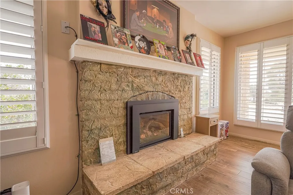Experience Silver Lakes living in this serene golf course home with comfort, style, and stunning views. Upon entering, you are greeted by the living room featuring upgraded wood-look plank flooring, a stone fireplace, and large windows with shutters that fill the space with natural light. The kitchen offers ample cabinet space and opens to the dining area with a wet bar, ideal for entertaining. Tile flooring runs through the main areas, with carpeted bedrooms for added comfort. The primary bedroom offers sliding doors to the back patio and yard with stunning golf course views, a spacious walk-in closet, and an ensuite with a vanity and tiled shower. The hallway bathroom includes washer and dryer hookups. Step outside to enjoy peaceful mornings or sunset views over the golf course. Dont miss this opportunity schedule your showing today!