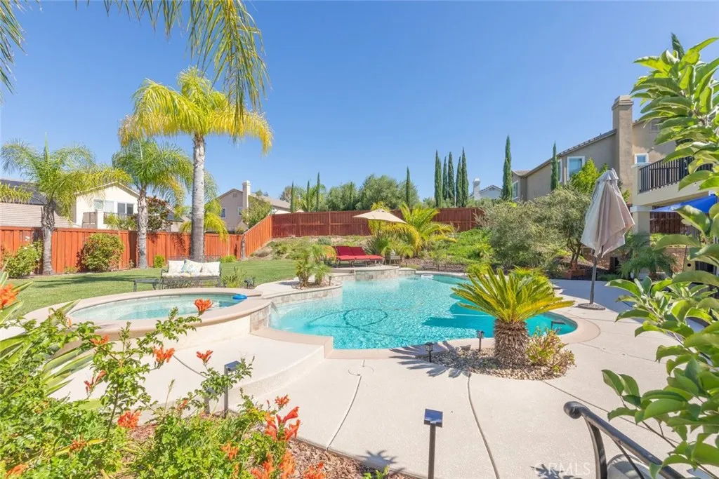 Picture yourself in this stunning two-story home that truly checks every box for comfort, style, and functionality. This home has over $200K in upgrades throughout and offers a spacious 4 car garage. From the moment you step inside, youre greeted by elegant formal dining and living areas that seamlessly flow into an expansive family room. The heart of the home is the modern kitchen, showcasing brand-new light and bright quartz counters, top-of-the-line appliances, and an oversized pantry designed and custom wine bar to make both everyday living and entertaining effortless. Sitting on a rare quarter-acre lot, the backyard is your personal retreat. Whether youre hosting family gatherings, watching kids play, letting pets roam, or simply unwinding, youll love the sparkling pool and spa with plenty of space left over for entertaining. The thoughtful floor plan includes a private downstairs bedroom with its own full ensuite bathroomideal for guests, in-laws, or multi-generational living. Abundant storage options, a spacious laundry room, and multiple closets ensure the home is as practical as it is beautiful. Upstairs, the oversized primary suite offers its own balcony overlooking the pool, a true sanctuary with a completely remodeled spa-like bathroom featuring a state-of-the-art shower, freestanding tub, and sophisticated lighting. Additional bedrooms are generously sized with brand-new carpet, while a Jack-and-Jill suite and a large bonus room provide even more flexibility for family or work-from-home needs. Located just minutes from Temeculas award-winning Wine Country, this
