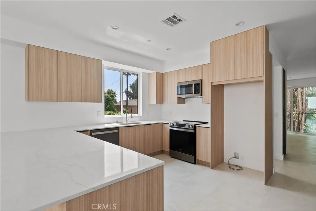This newly built rear unit at 13944 Vanowen St in Van Nuys offers modern design and everyday comfort. The home has three bedrooms and two and a half bathrooms, spread out over a smart layout. It totals about 2,468 sq ft, including a private two-car garage and a laundry area with direct access to a private patio. The interior space, excluding the garage, is approximately 1,801 sq ft, ensuring a comfortable and private living environment. On the main level, you will find a bright open-concept living area that connects to a private balcony, ideal for relaxing or entertaining. Upstairs, the three bedrooms are located together, including a spacious primary suite. The living room also opens to a separate balcony, creating several outdoor areas and a smooth indoor-outdoor living experience. This home features high-quality finishes, lots of natural light, and a quiet location at the back of the property. It provides a rare chance to live in a modern, private, and peaceful setting. The home is also conveniently close to Valley Glen, major freeways, and everyday services, making it a great choice in the San Fernando Valley.