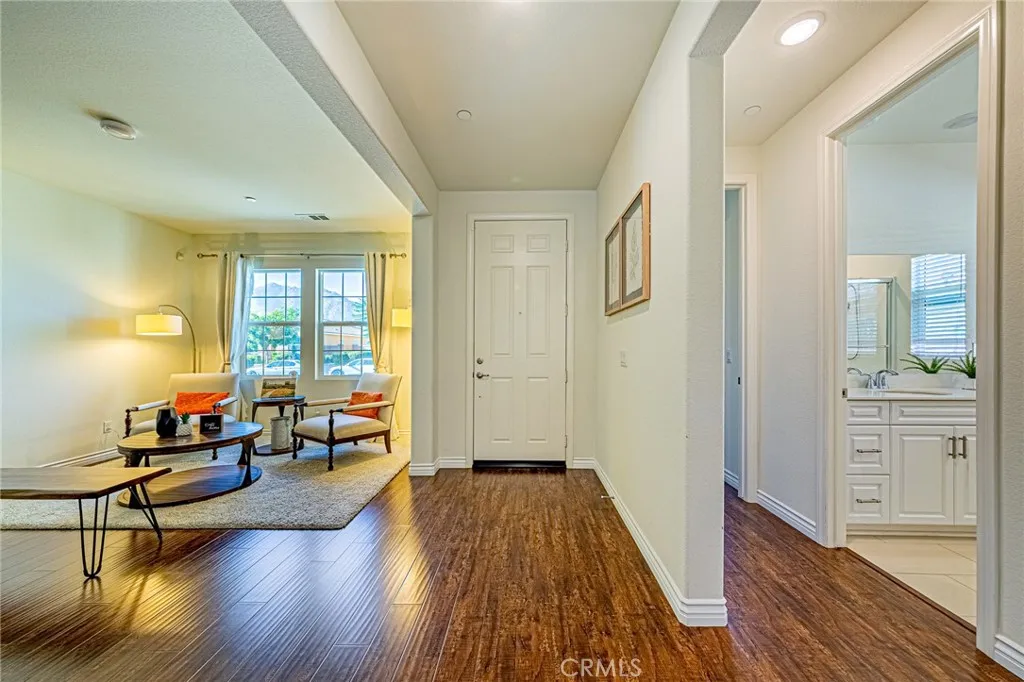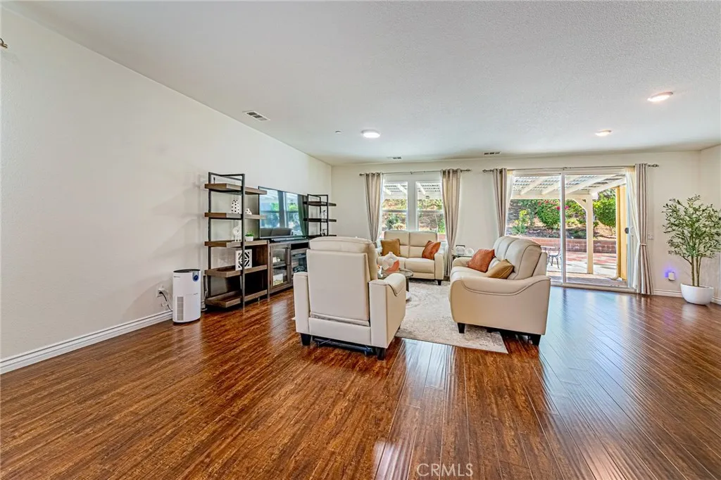 Nestled against the scenic foothills of Riversides Spring Mountain Ranch, this beautifully upgraded single-story home offers modern elegance, open living, and breathtaking mountain views. Built in 2018, the home features 4 spacious bedrooms, 3 full bathrooms, and a bright, open floor plan designed for todays lifestyle. The modern kitchen is a true showpiece, with white shaker cabinetry, granite countertops, designer glass-tile backsplash, stainless steel appliances, and a large center island perfect for gathering. The walk-in pantry with glass door adds both function and style. The open-concept layout flows seamlessly to the spacious great room and dining area, creating an inviting space filled with natural light and warmth. The primary suite offers a peaceful retreat with a large walk-in closet and a spa-inspired bath featuring dual sinks, quartz countertops, a soaking tub, and a separate shower. Three additional bedrooms and two full baths provide comfort and flexibility for guests or home office use. Step outside to enjoy your own private garden oasisa beautifully landscaped yard with mature fruit trees (including fig, pomegranate, pear, and more), colorful blooms, and sweeping mountain views. The spacious paved patio and covered sitting area offer the perfect setting for outdoor dining or morning coffee surrounded by nature. Additional highlights include wood-style flooring throughout, recessed lighting, central HVAC, neutral paint tones, and an attached two-car garage with upgraded glass-panel door. Situated on an 11,326 sq ft lot with no HOA, this home combines privac