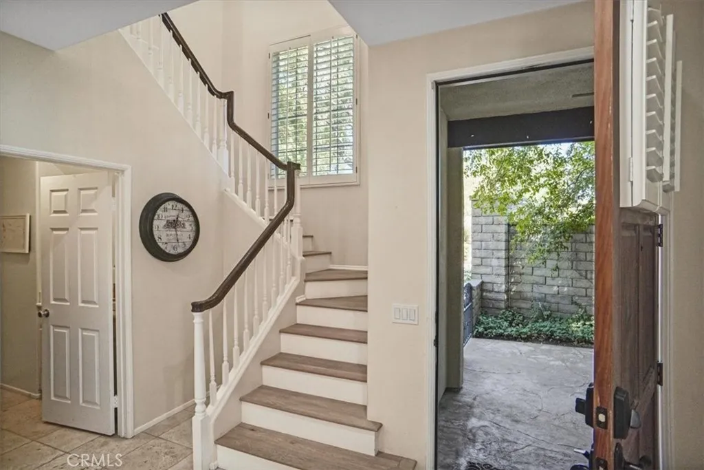 Beautiful Valencia 'Avignon Gated Community" Executive Townhome. ** NO Mello Roos Taxes** . Location-Location-Location. Ideal for Empty Nesters, Vacation Home, or Snowbirds. This ideal townhome location includes a lushly landscaped rear patio and yard directly overlooking the 16th green at Valencia CC. This is the 3 bedroom floorplan however the 3rd bedroom option is/was configured as an open loft. This layout includes living, family and dining areas. Two sided fireplace in both the living & family rooms. Spacious kitchen featuring lots of granite counter and cabinet space. Counter seating bar for more casual meals. Expansive windows with plantation shutters throughout showcasing the rear patio yard, and golf course. Light bright throughout. The primary bedroom overlooks the golf course and features a two way fireplace connecting to the primary bathroom suite. Double door walk in closet adjacent to the primary bathroom suite. The 2nd upstairs bedroom has it's own en-suite full bath. Inside Laundry room. Direct garage access. Garage features extensive storage cabinets. Relaxing outdoor lifestyle offers a covered patio, fountain, firepit, fruit trees and secluded golf course viewing area plus a side yard with a storage unit. Recently installed high efficiency Heat Pump FAU for central heating and cooling. Avignon community amenities include the recreation center with pool, Spa, lounge & firepit area plus lushly landscaped grounds with relaxing seating areas for pleasant strolls without leaving the Avignon community. Short stroll to the Valencia Town Center featuring shopping,
