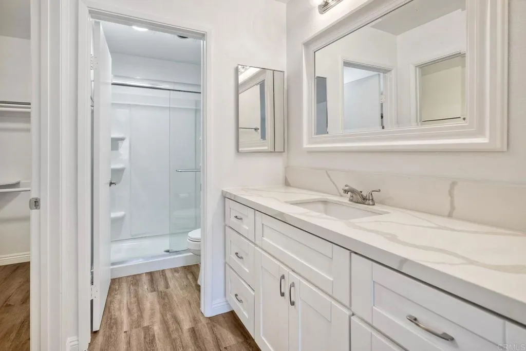 Welcome home to this beautiful 3 bed, 2 bath condo in the heart of Vista! Walk in to this move in ready home and enjoy ample living space with a vaulted ceiling. The kitchen has a large island perfect for cooking and entertaining. The private patio gets plenty of sunlight. The 2 guest bedrooms have plenty of closet space. The primary bedroom has a walk in closet and upgraded walk in shower. Enjoy the tennis courts, pool and spa, and plenty of green space. This unit has a 1 car garage with plenty of storage.